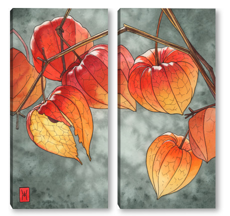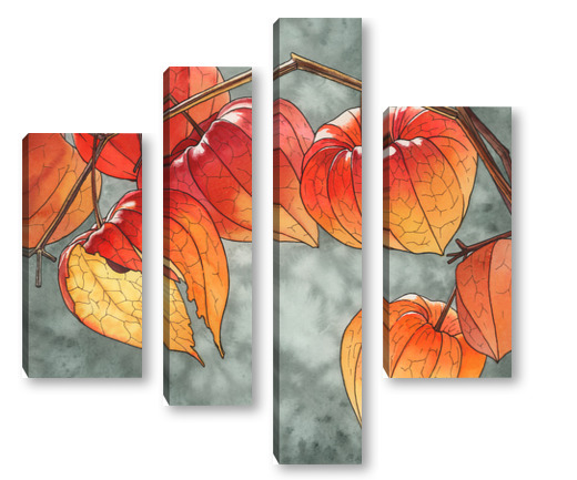 Модульная картина Акварель "Физалисы" Акварель "Физалисы"
