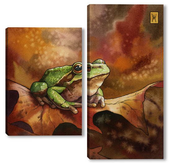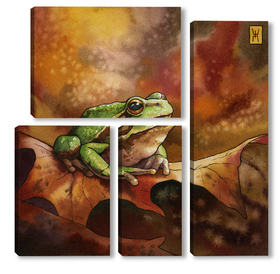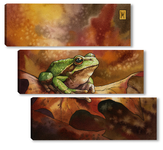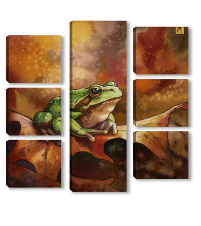 Модульная картина Акварель "Лягушка и осень" Акварель "Лягушка и осень"