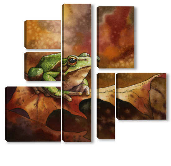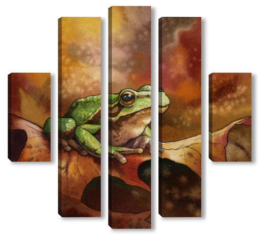 Модульная картина Акварель "Лягушка и осень" Акварель "Лягушка и осень"