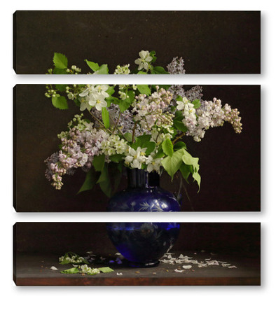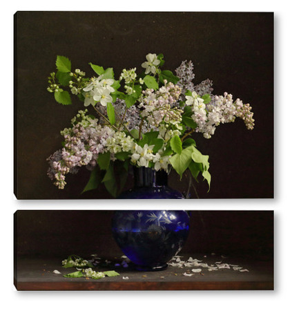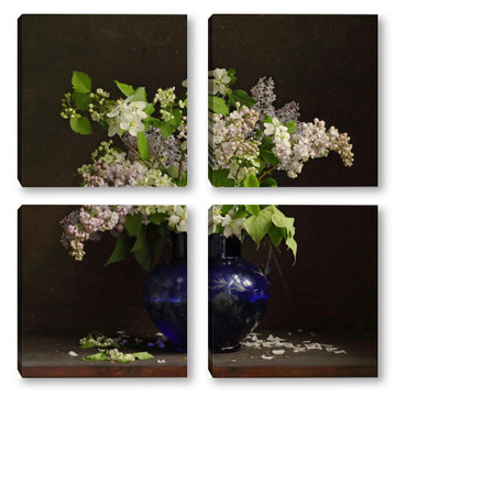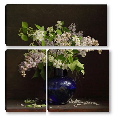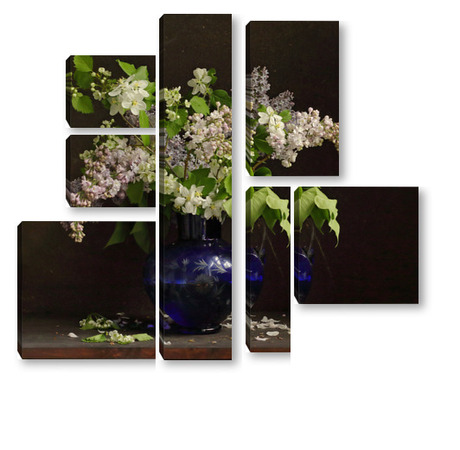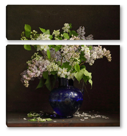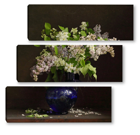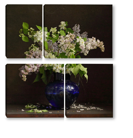 Модульная картина Букет сирени в синей вазе Букет сирени в синей вазе