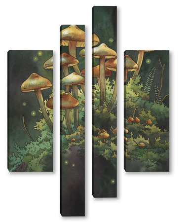Модульная картина Акварель "Грибной лес" Акварель "Грибной лес"