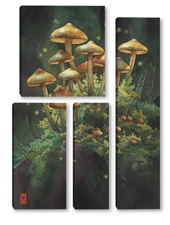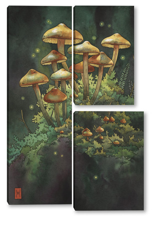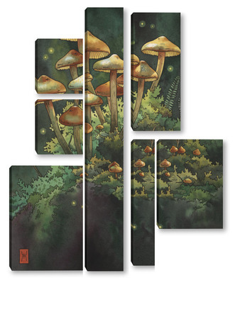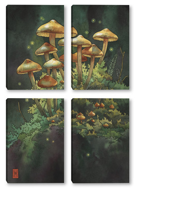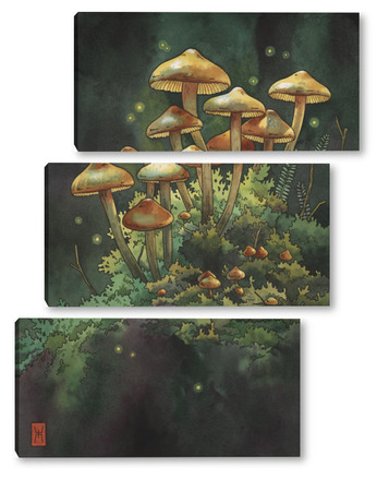 Модульная картина Акварель "Грибной лес" Акварель "Грибной лес"