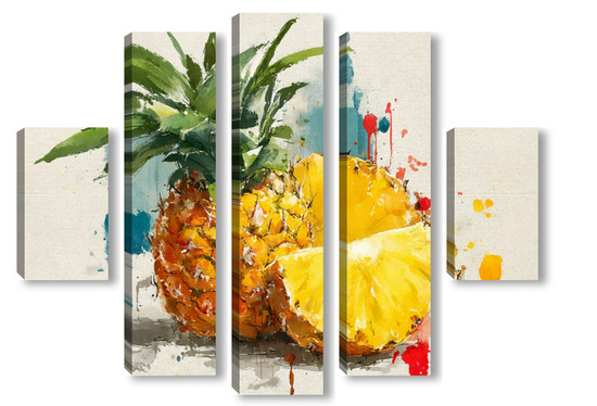 Модульная картина Ананас в акварельных брызгах Ананас в акварельных брызгах