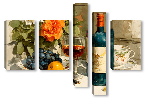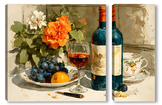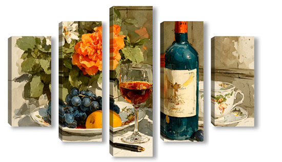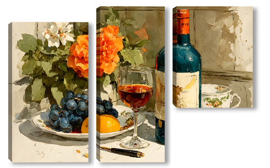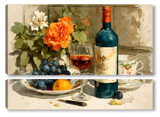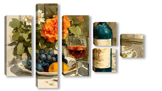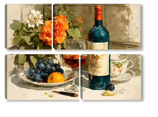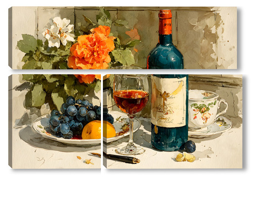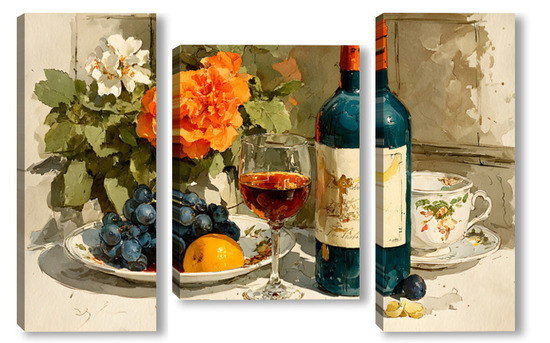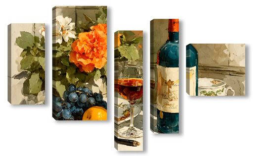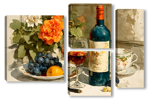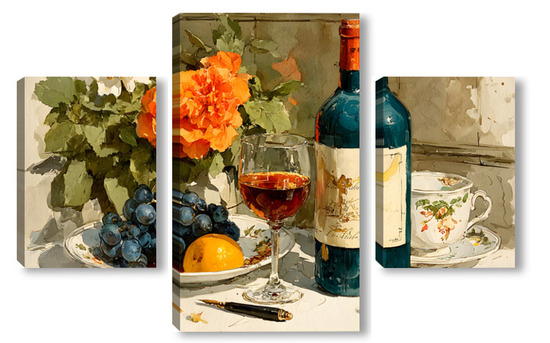 Модульная картина Натюрморт вино и цветы Натюрморт вино и цветы