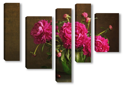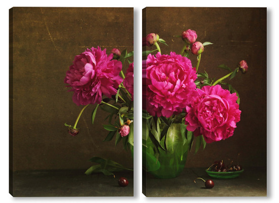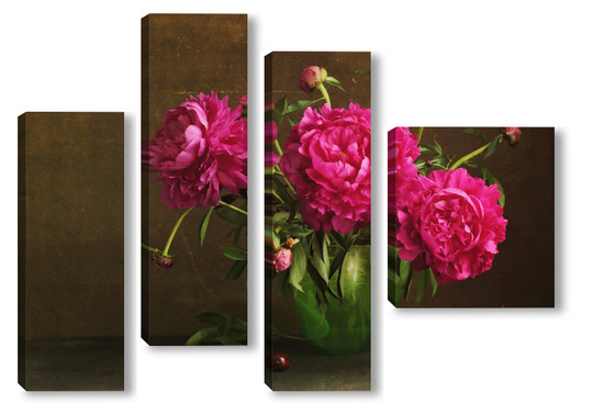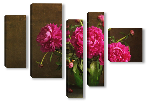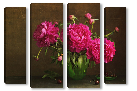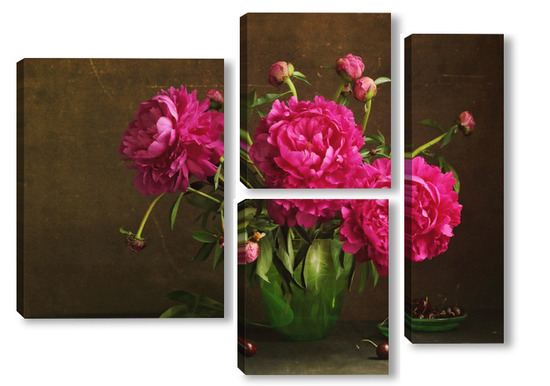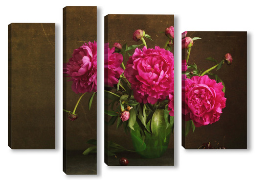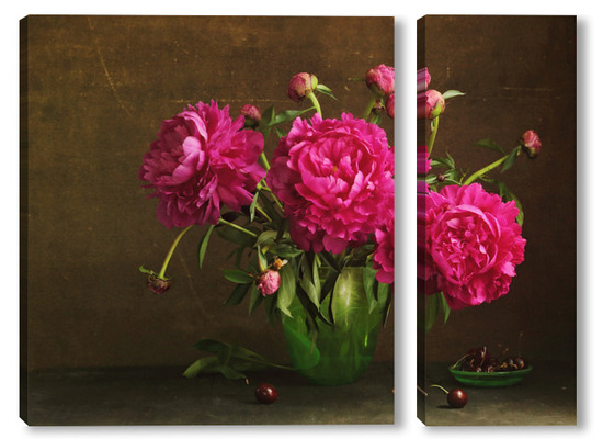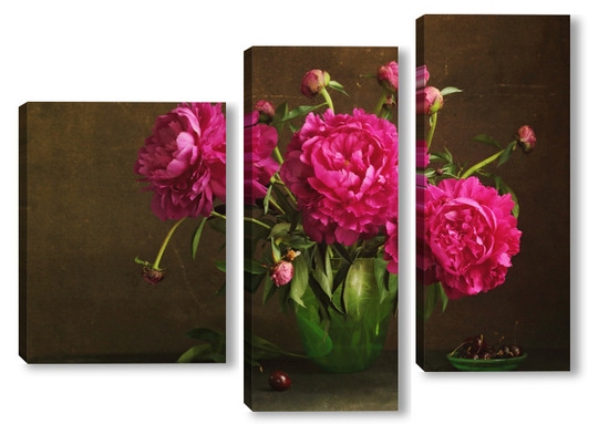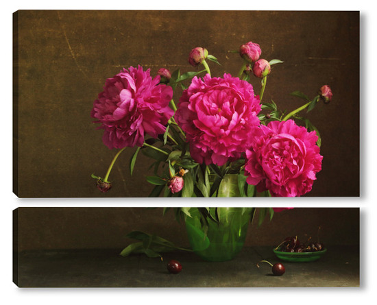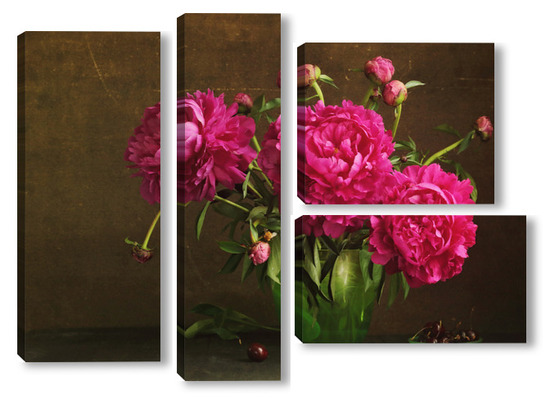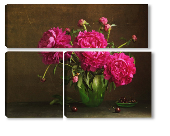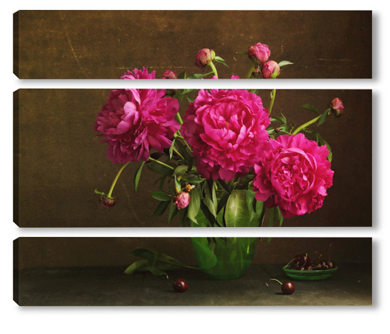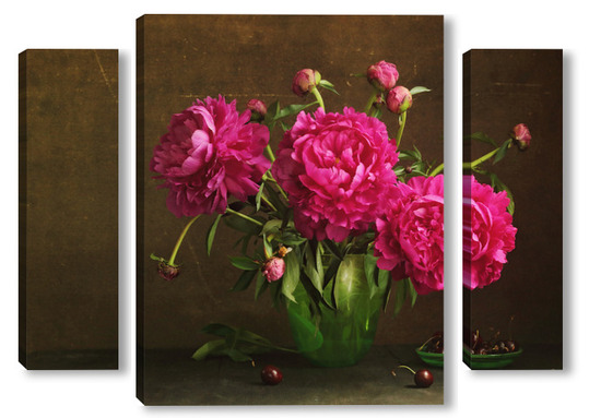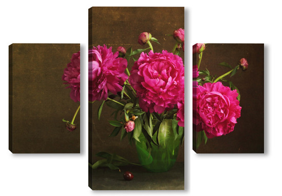 Модульная картина Красные пионы в зеленой вазе Красные пионы в зеленой вазе