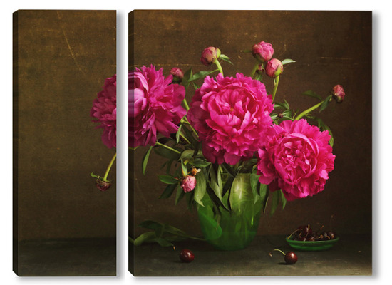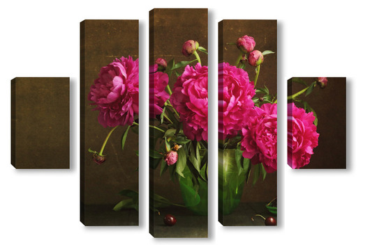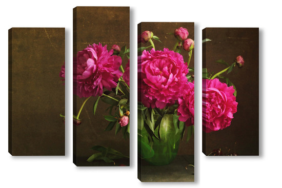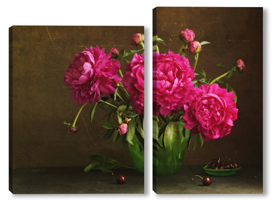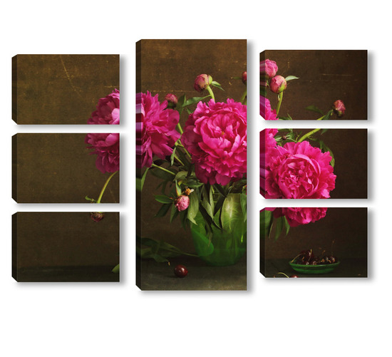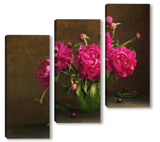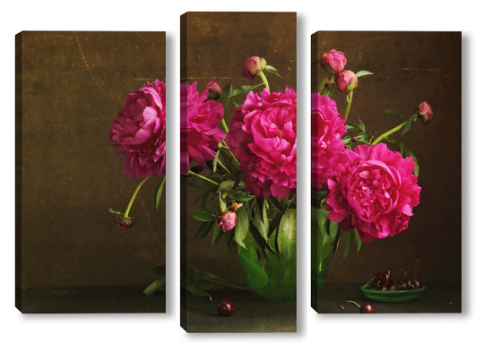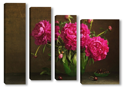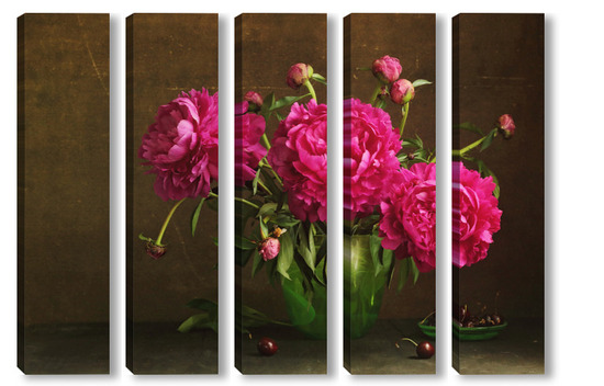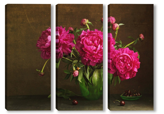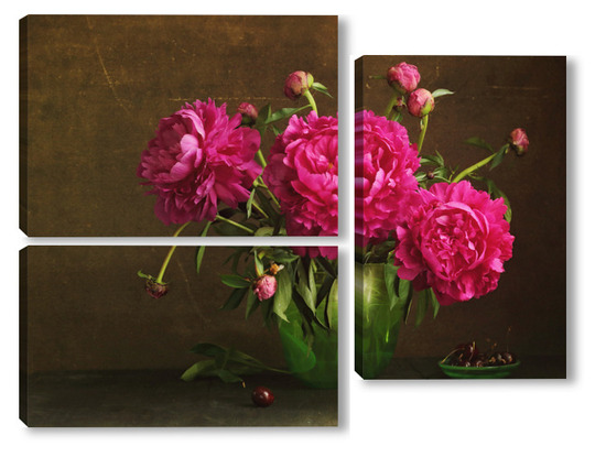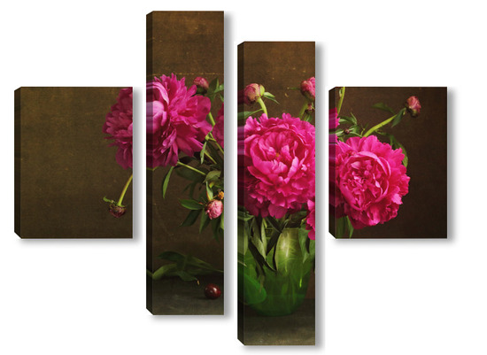 Модульная картина Красные пионы в зеленой вазе Красные пионы в зеленой вазе