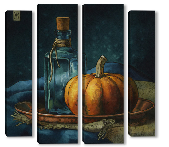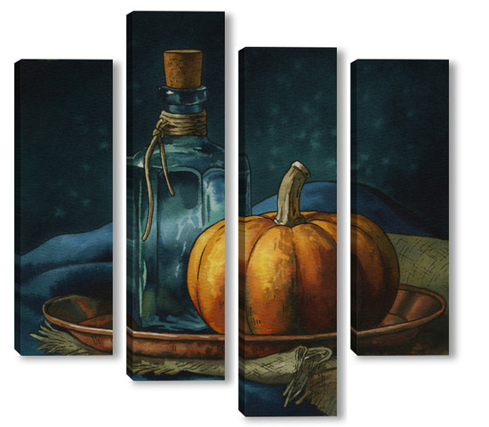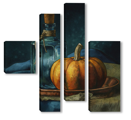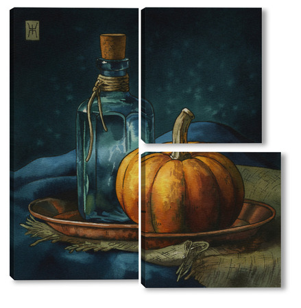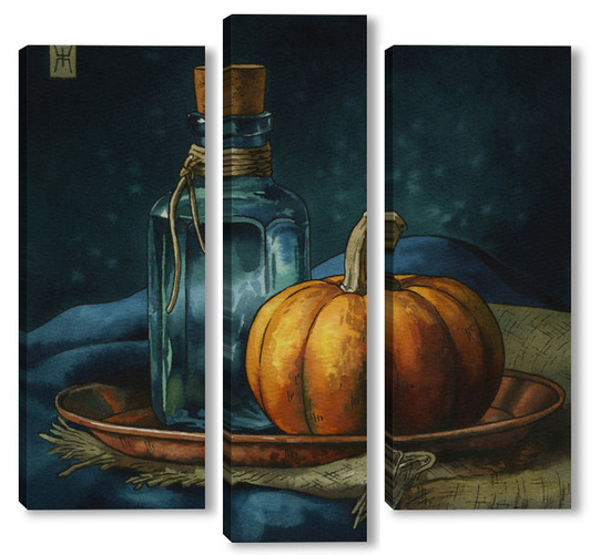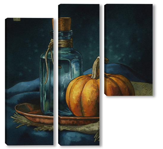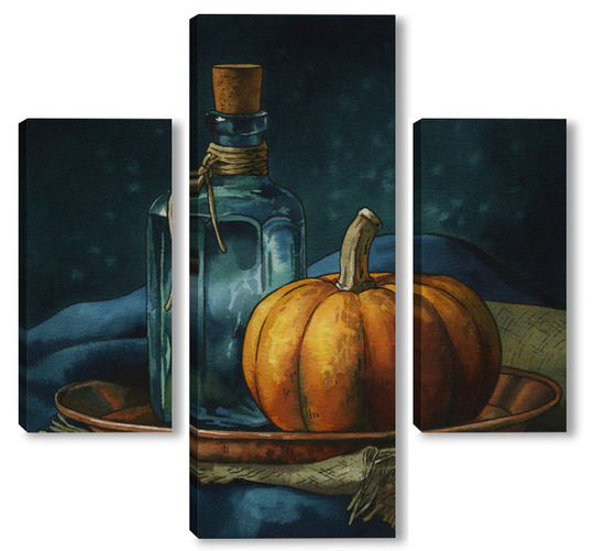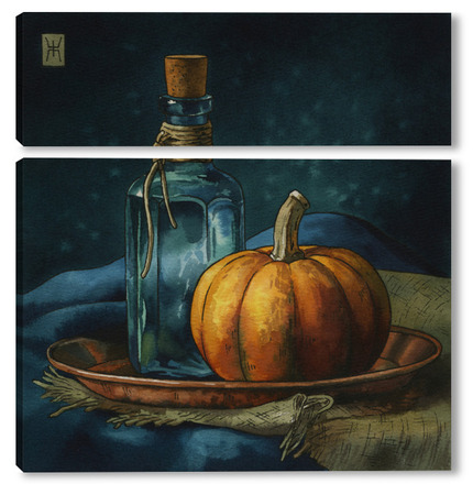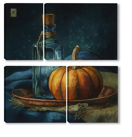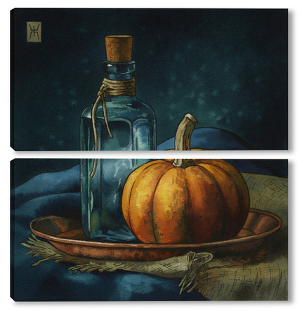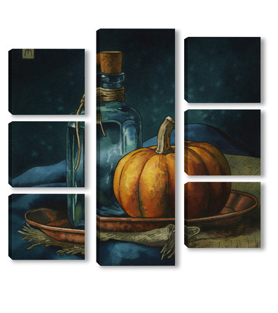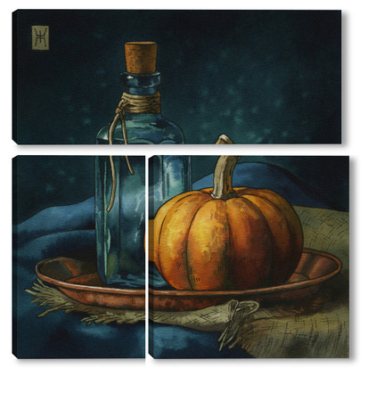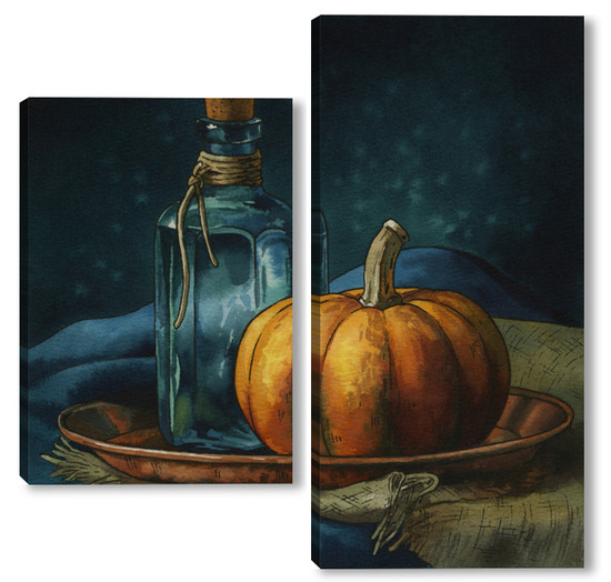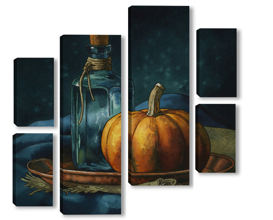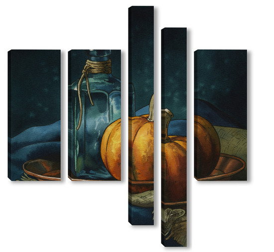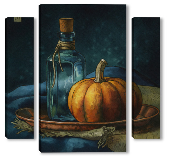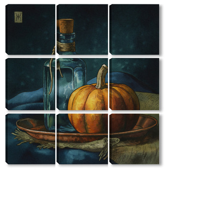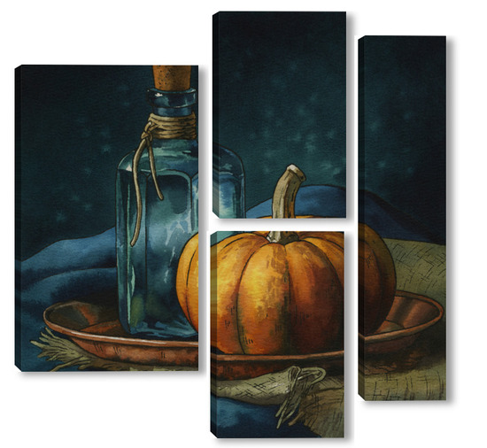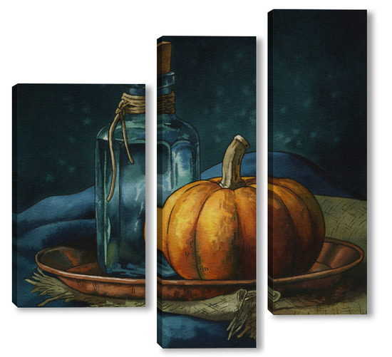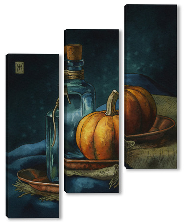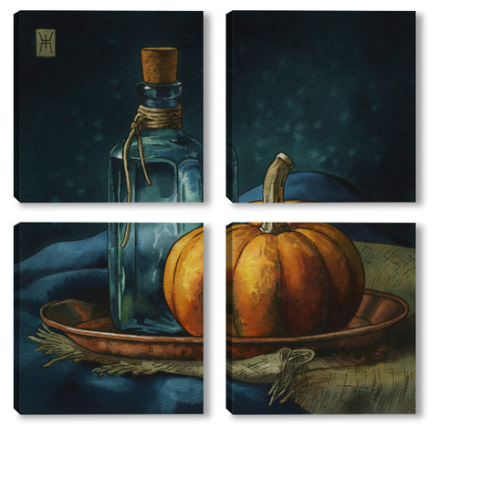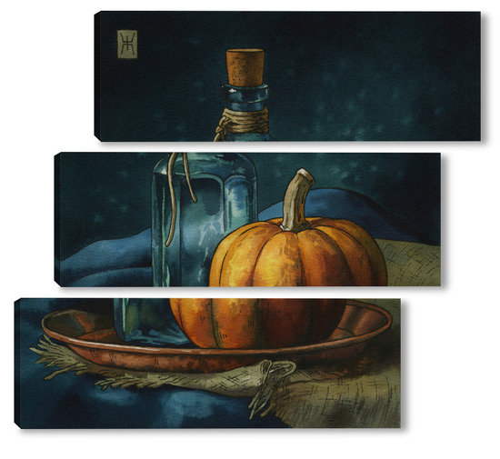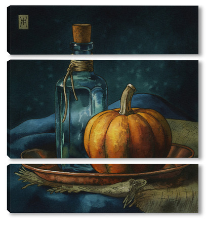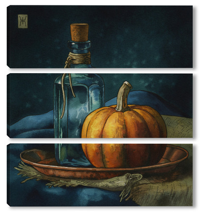 Модульная картина Акварель "Натюрморт с тыквой" Акварель "Натюрморт с тыквой"