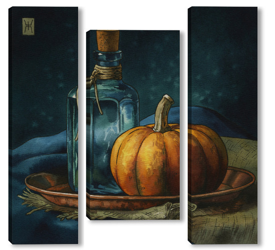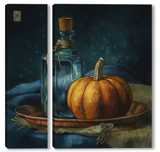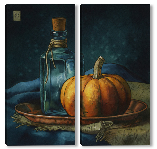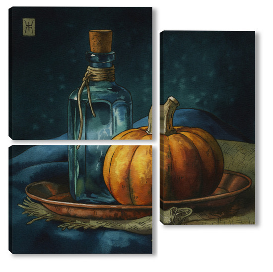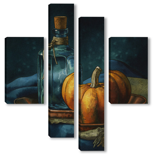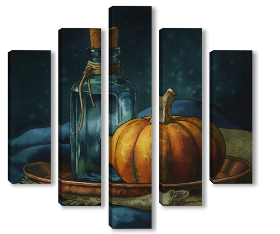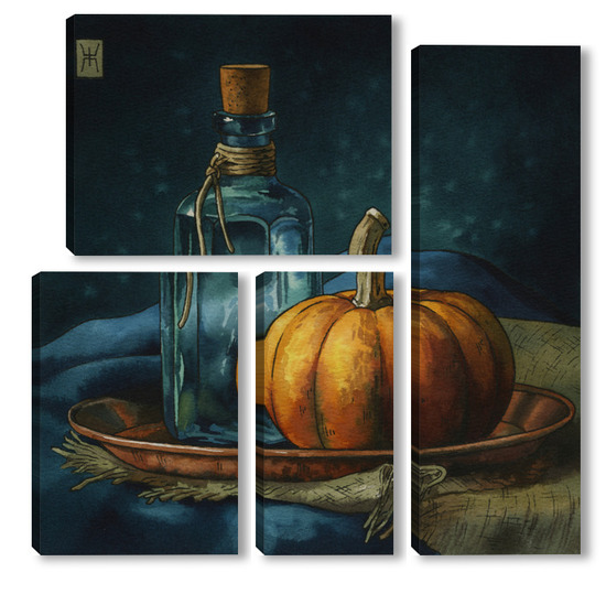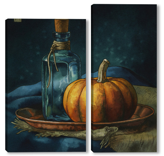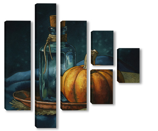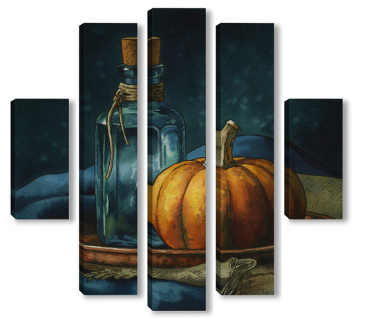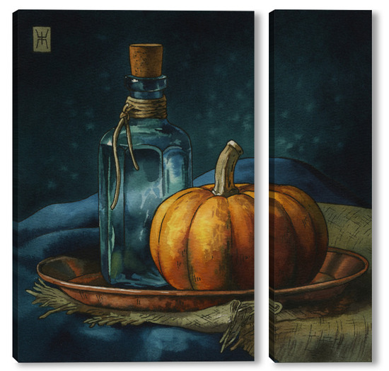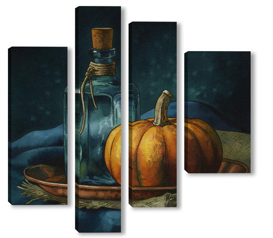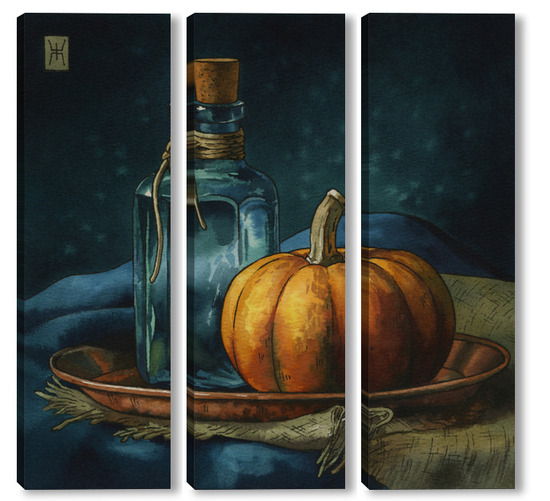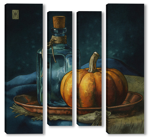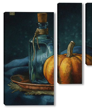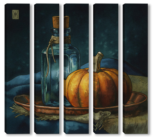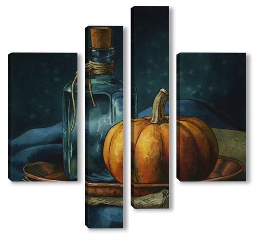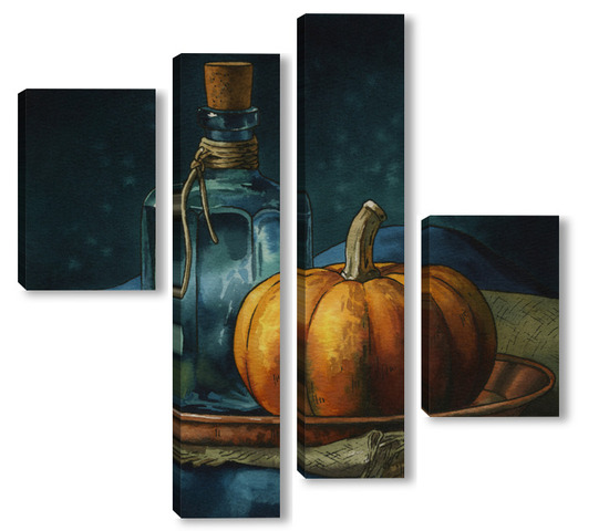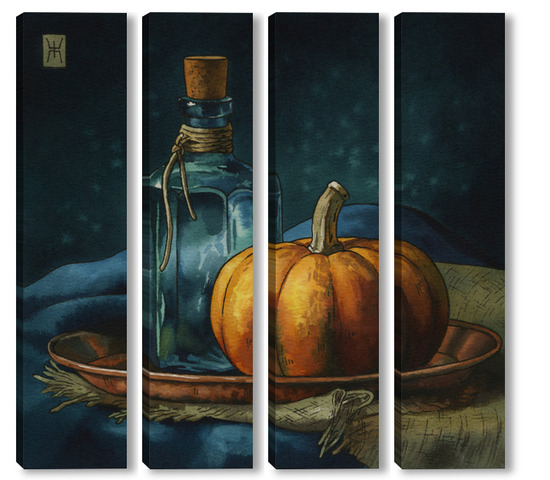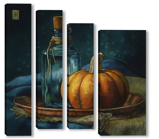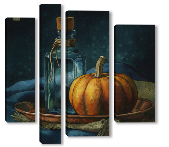 Модульная картина Акварель "Натюрморт с тыквой" Акварель "Натюрморт с тыквой"
