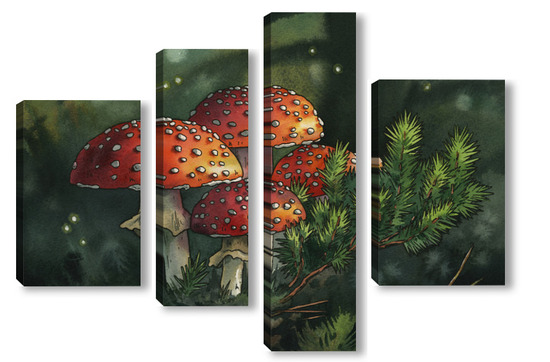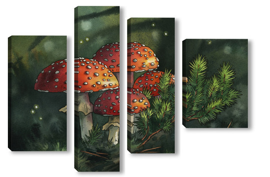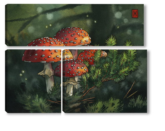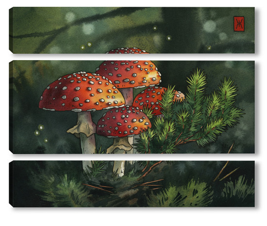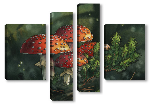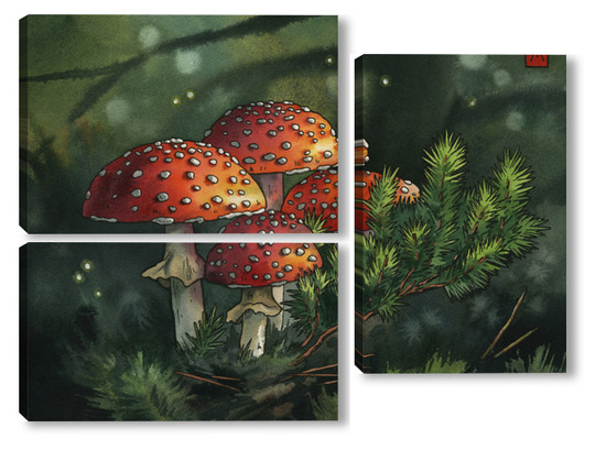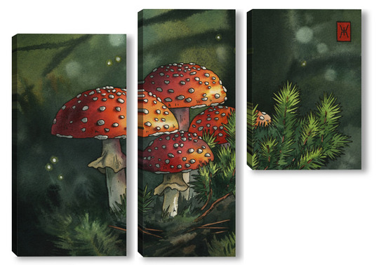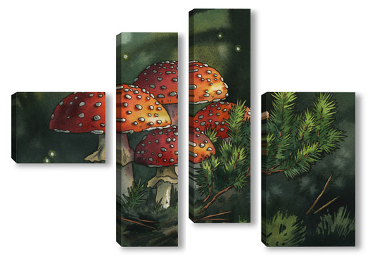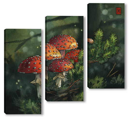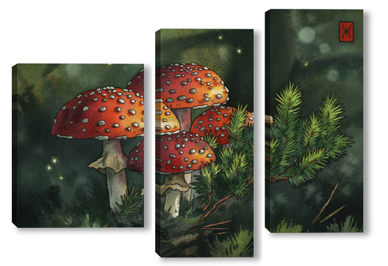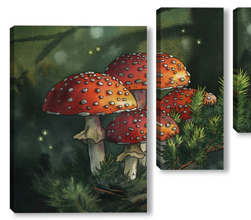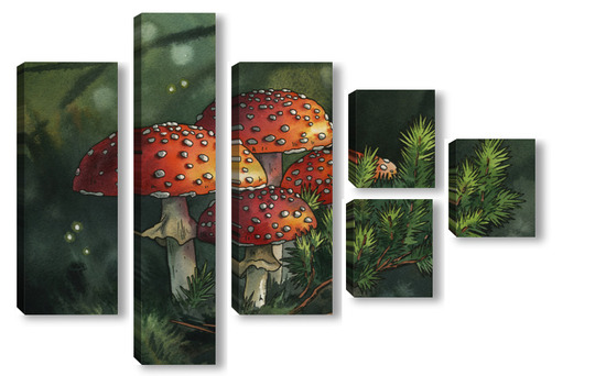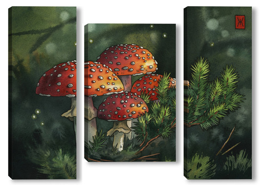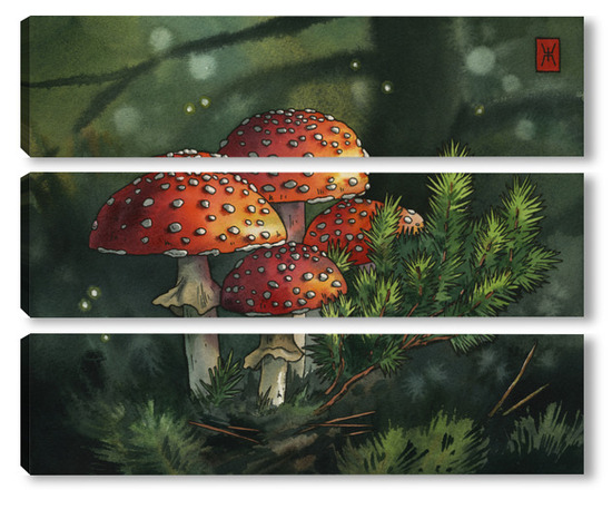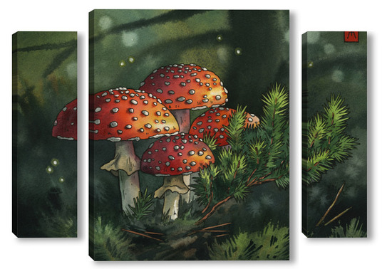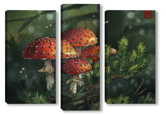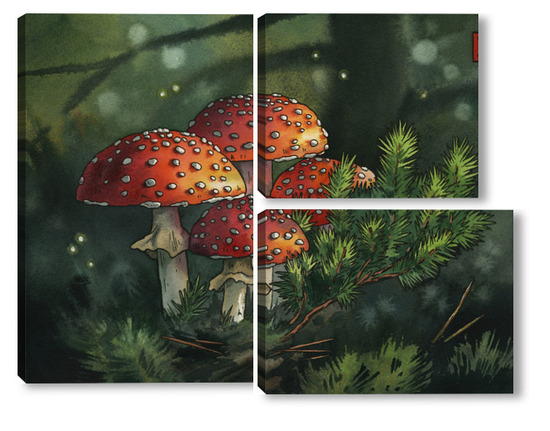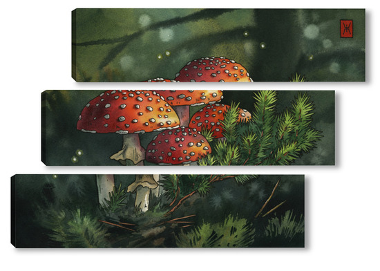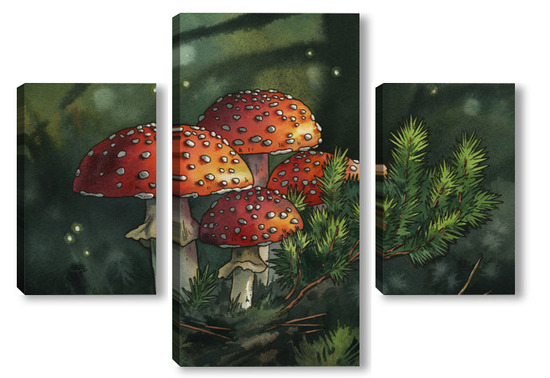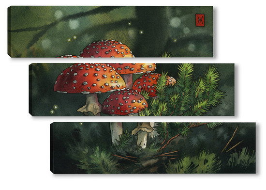 Модульная картина Акварель "Мухоморы" Акварель "Мухоморы"