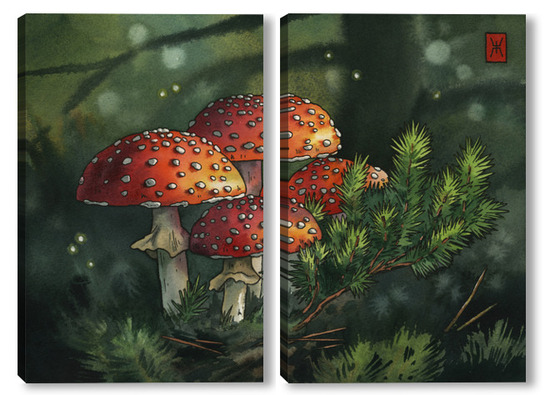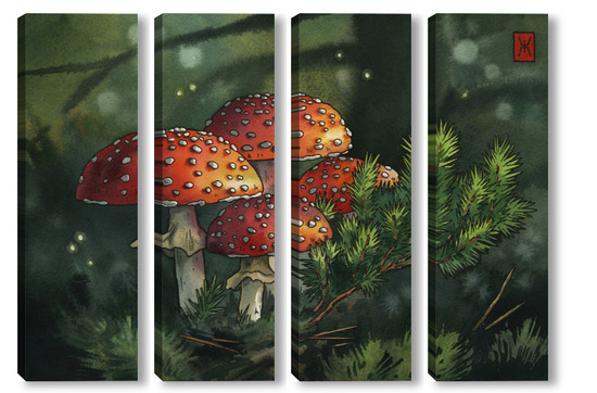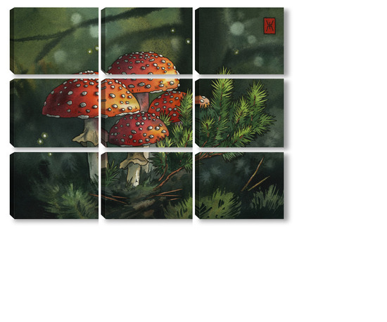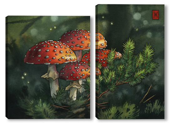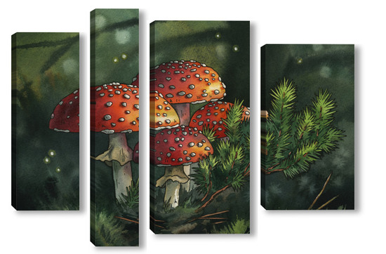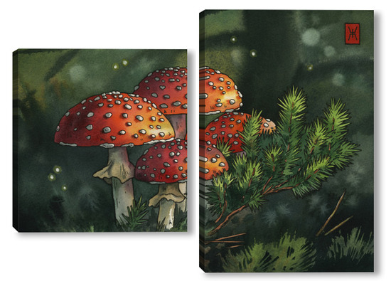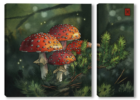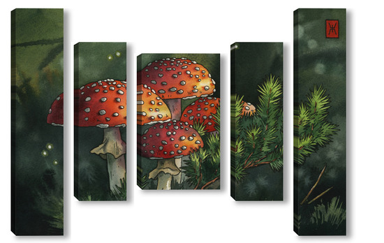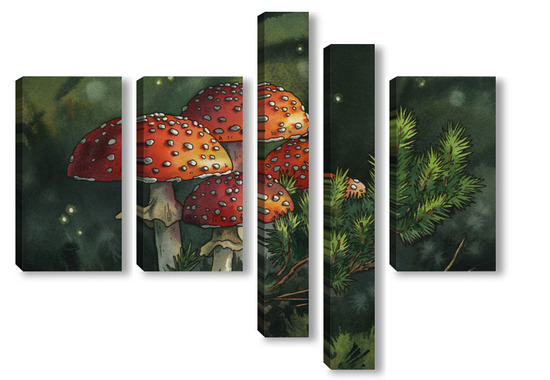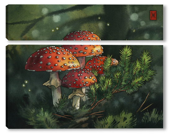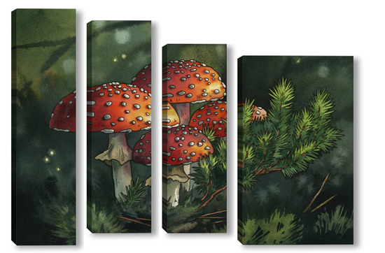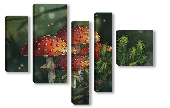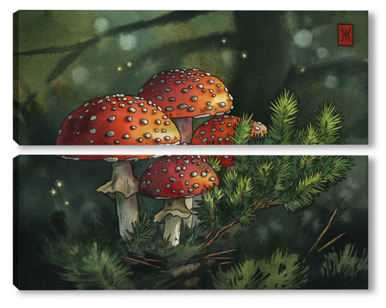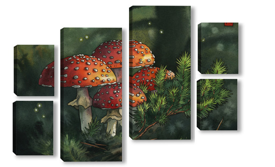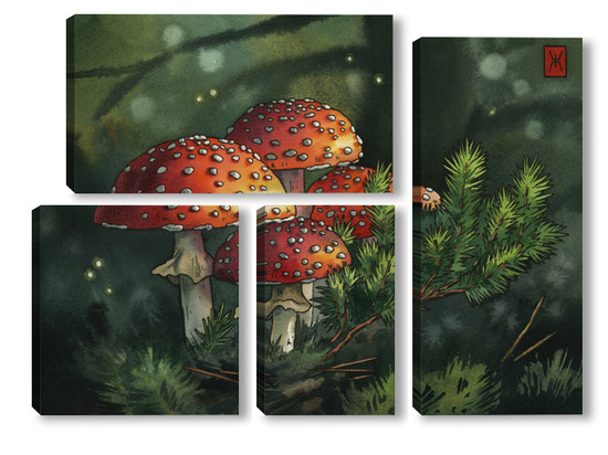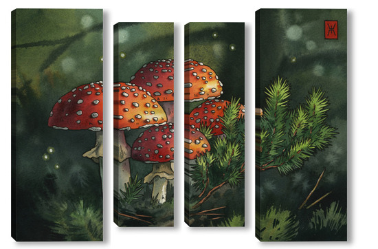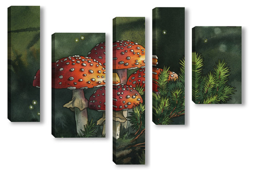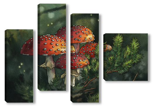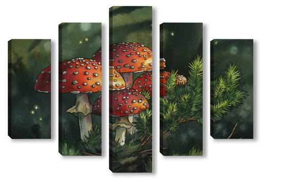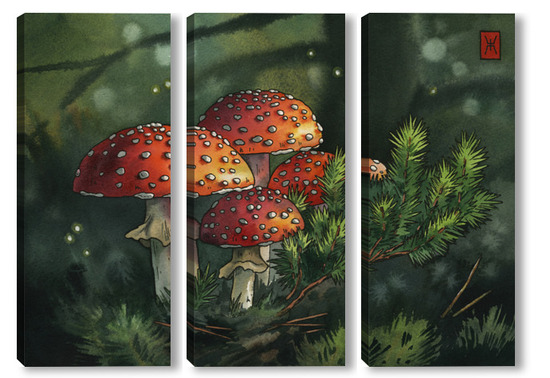 Модульная картина Акварель "Мухоморы" Акварель "Мухоморы"