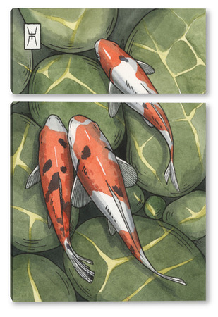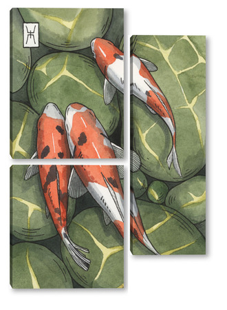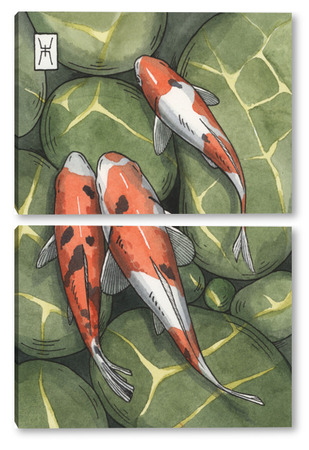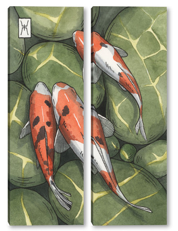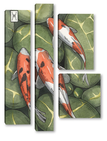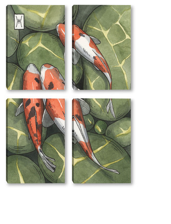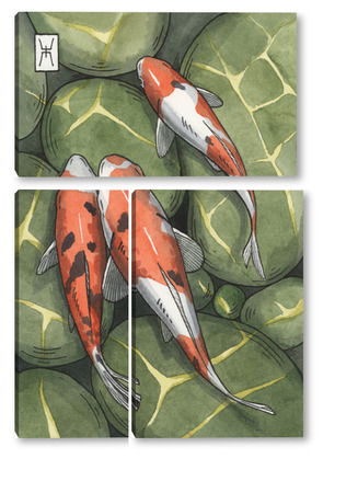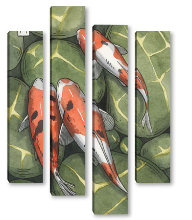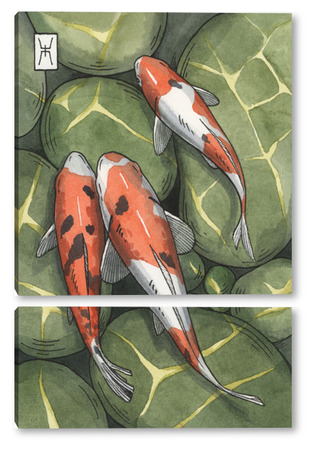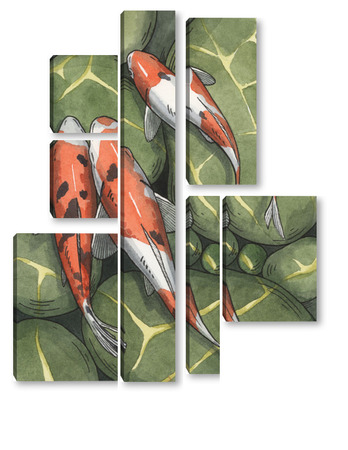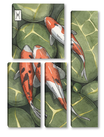 Модульная картина Акварель "Кои карпы" Акварель "Кои карпы"