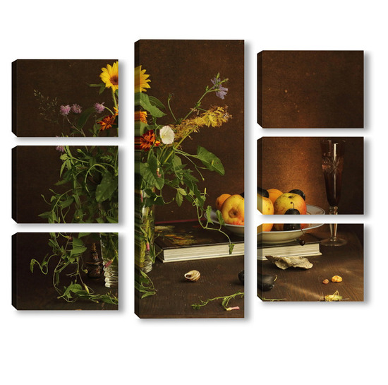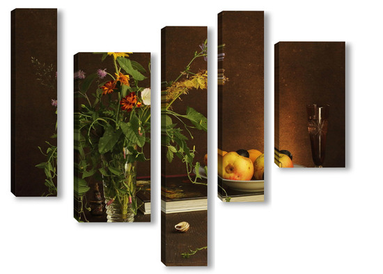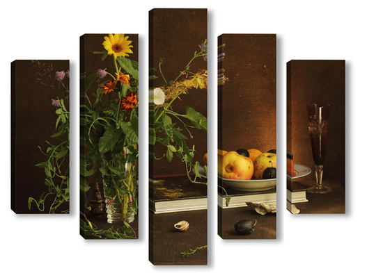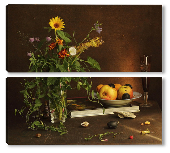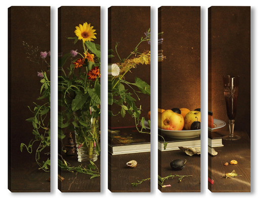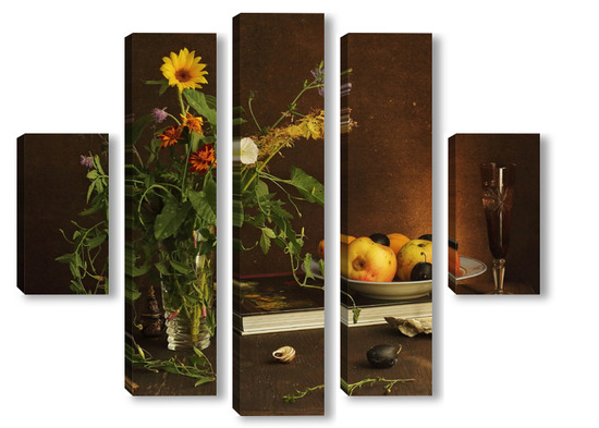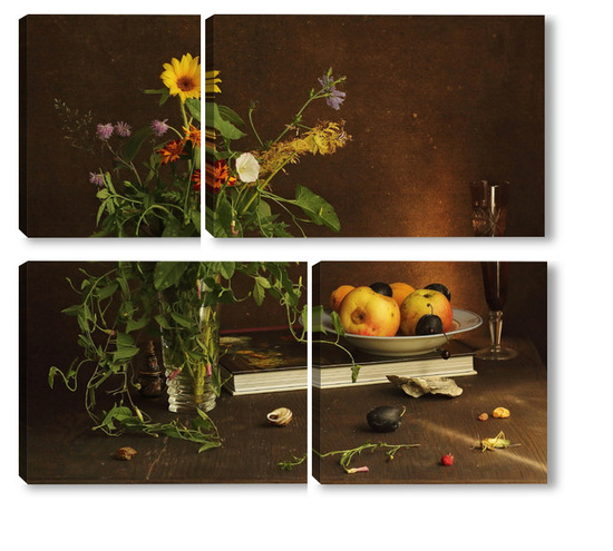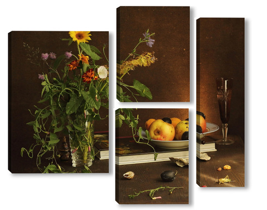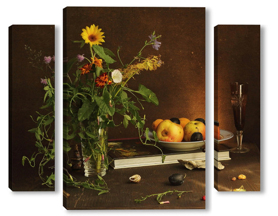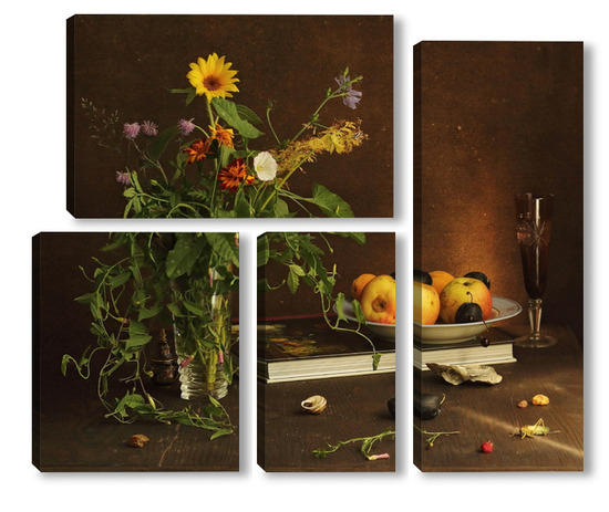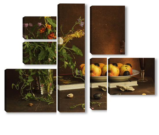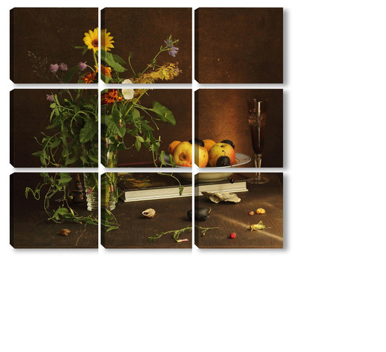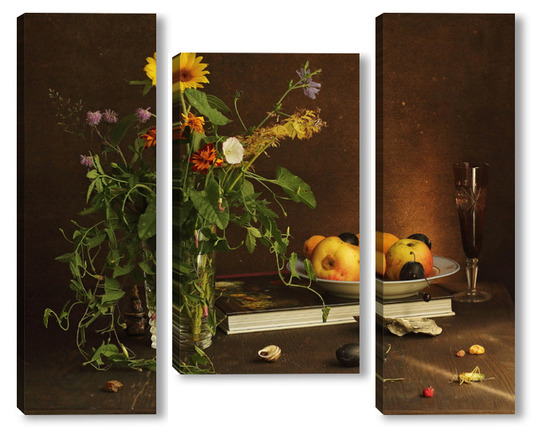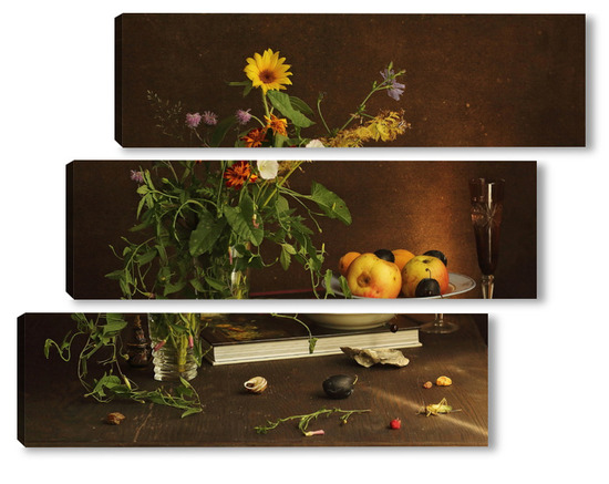 Модульная картина с ракушками и зеленым кузнечиком с ракушками и зеленым кузнечиком