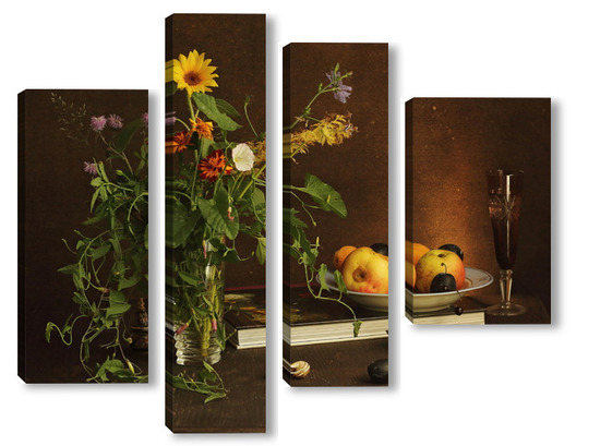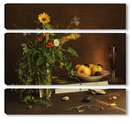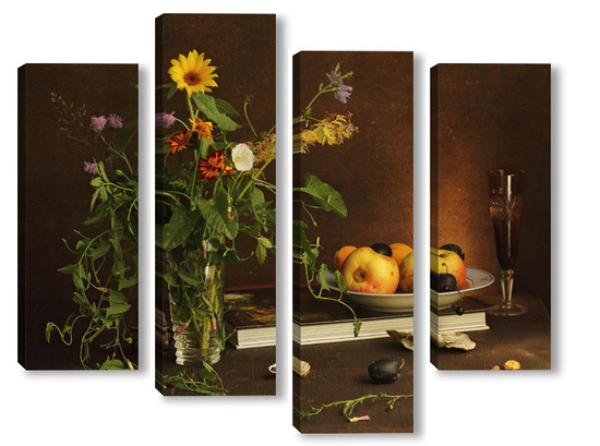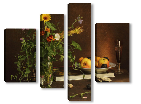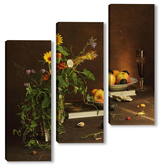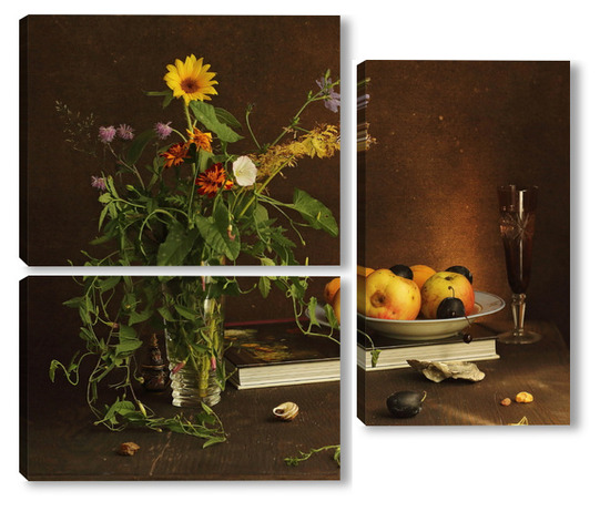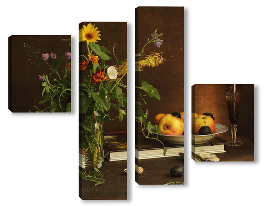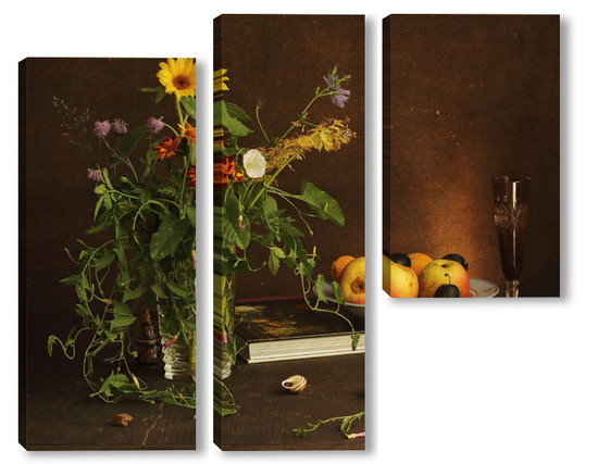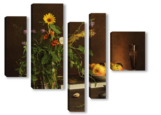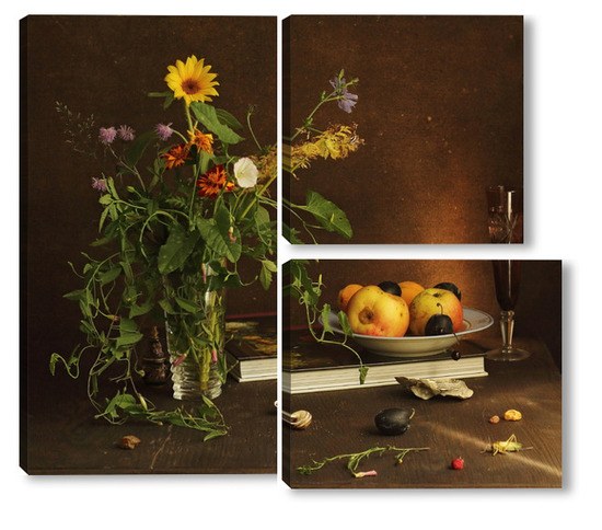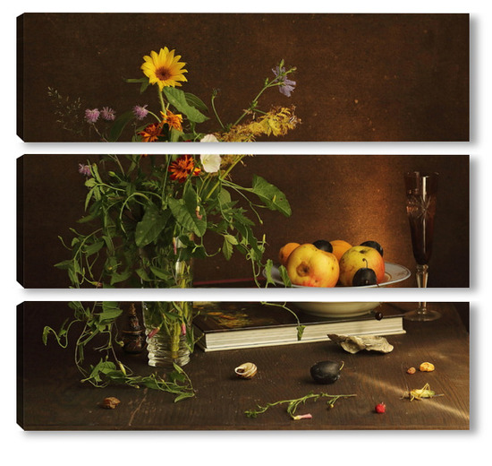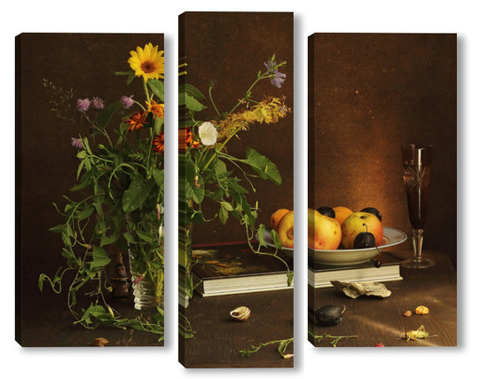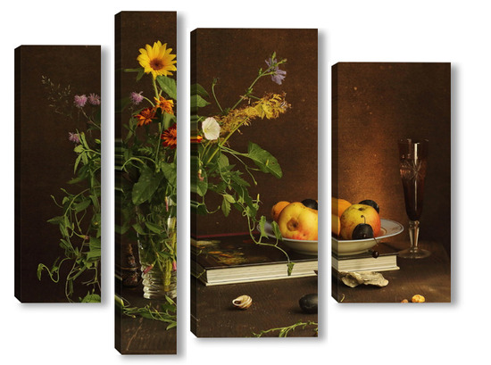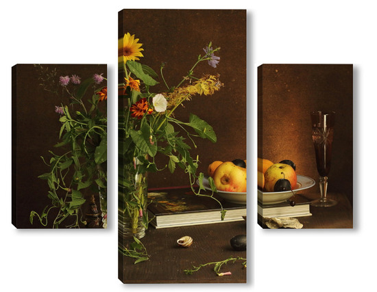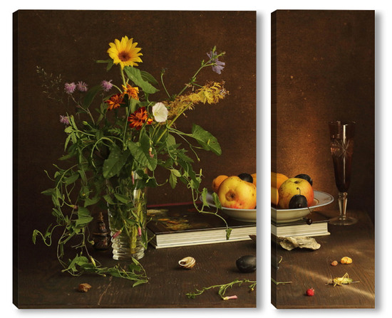 Модульная картина с ракушками и зеленым кузнечиком с ракушками и зеленым кузнечиком