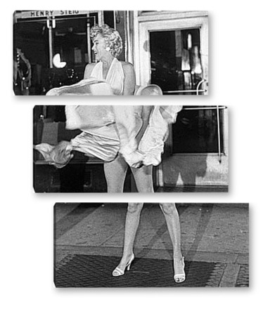 Модульная картина Мерлин Монро удерживающая платье. Мерлин Монро удерживающая платье.
