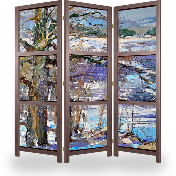 Стильная работа. Нежные цвета, удачно подобранные оттенки голубого цвета, лихие мазки, движение в ветвях деревьев, многообразие цветов , вопреки скудным краскам зимы - вот главные достоинства данной работы