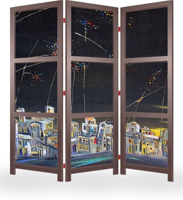 Картина изображает ночь, зиму и позитивно прохладное настроение автора. Черное небо и городской пейзаж освещены более мягким и близким светом, причем источником его может быть как обыкновенный фонарь, так и блуждающее радужное пятно, прикрытое лёгки