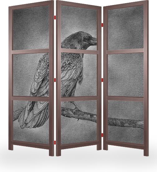 Ворон сидит на ветке. Рисунок выполнен с затенением, стилизованным под старинное фото. Для рисования использовались графитный карандаш и акварельная бумага.