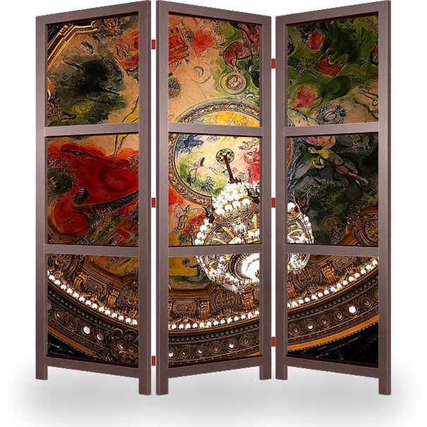 Зрительский зал Опера Гарнье. Венчает зал великолепная хрустальная люстра, плафон которой изначально был расписан в стиле итальянского возрождения, а в середине XX века его оформил великий Марк Шагал.