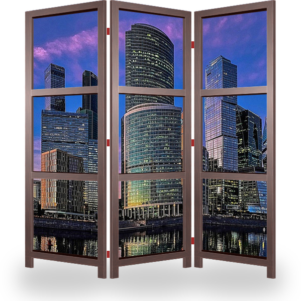 Чувственный закат над Сити, Современная композиция сочетает небоскребы и лазурное небо и отлично контрастирует с футуристическим формами строений Москва Сити. Необычный ракурс создает отличное романтическое настроение. Впервые применены самые последн