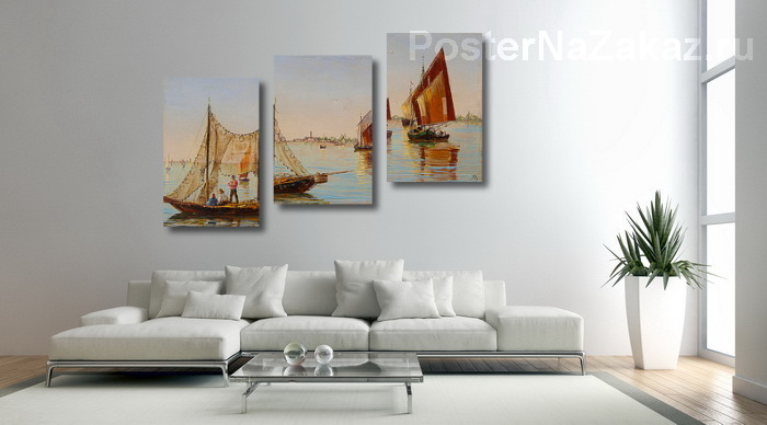 Постер Басино-ди-Сан-Марко в Венеции.Рыбаки на венецианской лагуне (пар