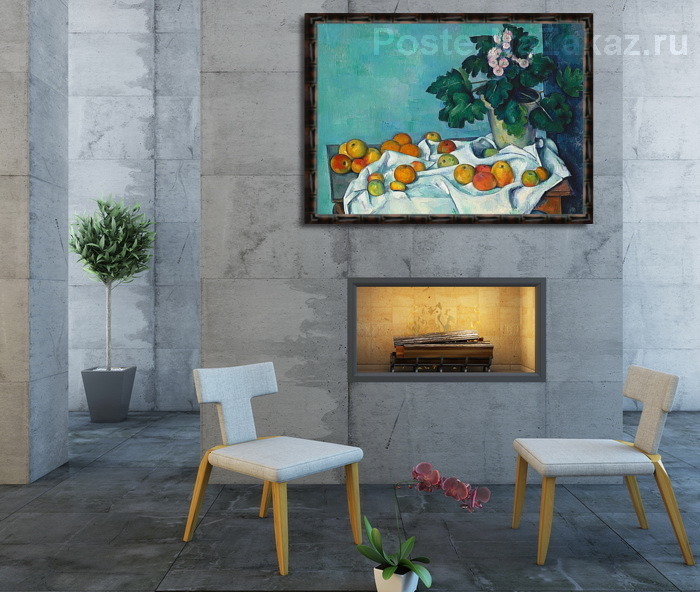 Постер Натюрморт с яблоками и горшком с примулой