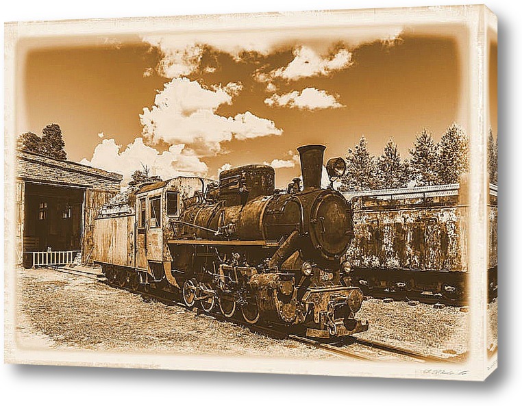 Ретро паровоз в музее узкоколейных железных дорог. Музей расположен недалеко от Переславля в д. Талицы. Большинство экспонатов действующие. Изображение переведено в монохром и тонировано в сепию.