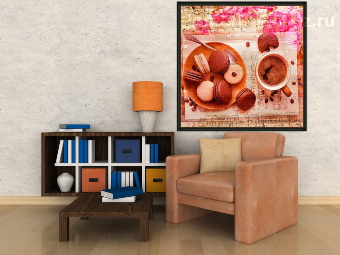 Изображение чашечки кофе, сладостей, нотных листов и цветов, добавит яркого и музыкального настроения вашей кухне. Яркие цвета, добавят теплоты и уюта в ваши комнаты.