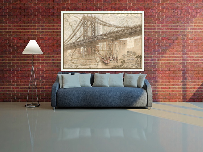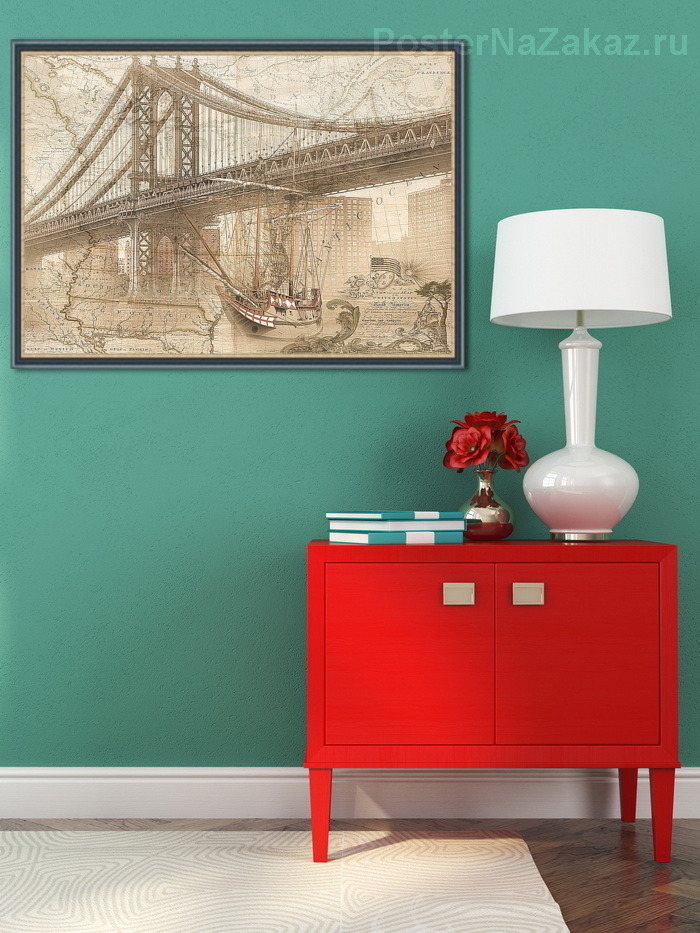 Изображение в интерьере Манхэттенского моста в ретро стиле с кораблем и картой станет прекрасным дополнением в вашей комнаты.