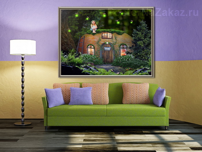 Сказочная картинка про маленькую фею, ее чудесный домик и волшебный, добрый лес. Много деталей, фотографию хочется рассматривать и постоянно находить что-то новое