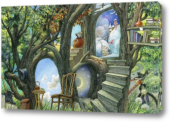 Ещё одна воплощённая попытка показать изобразительными средствами графики многомерность внутреннего пространства человека и его жилища, единого с пространством живой природы, и поэтому - тоже живого.