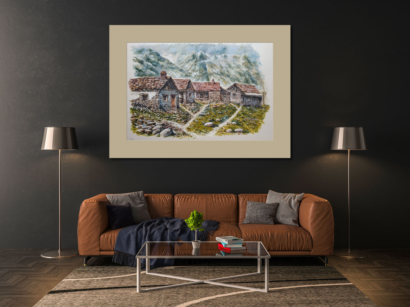 «The village in the mountains» paper, aquarelle, gouache