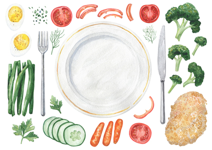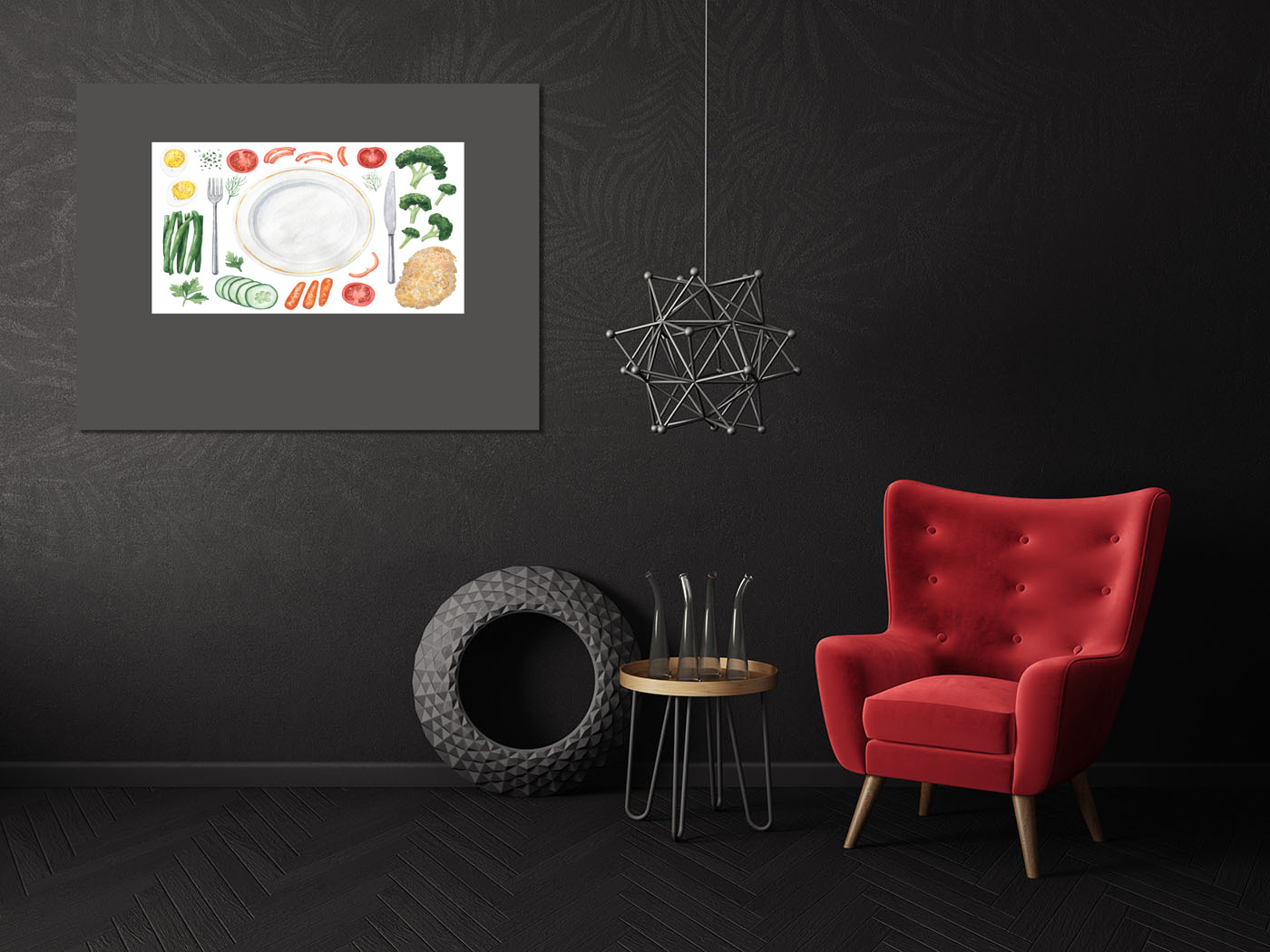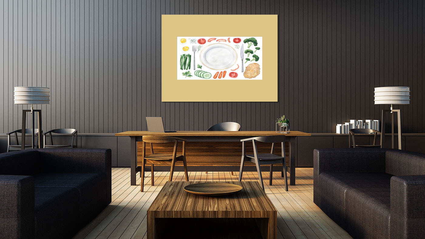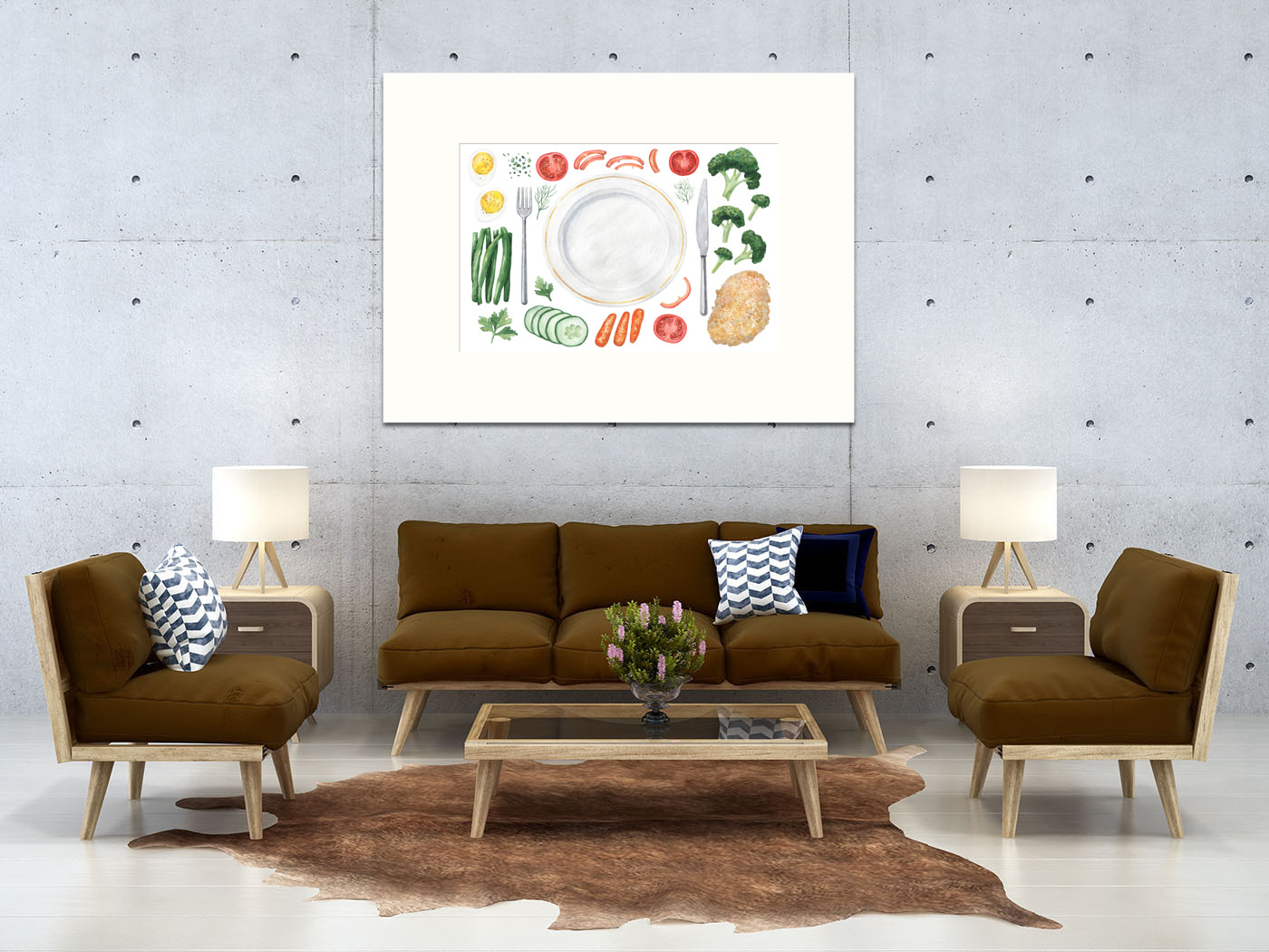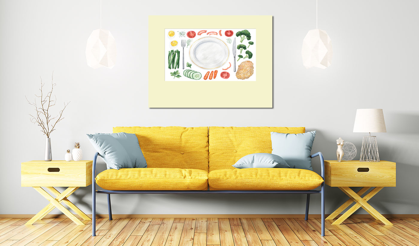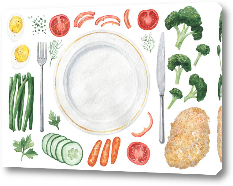 Коллаж, который прекрасно подойдет на кухню или в кафе. Все, что нужно, для здорового завтрака или обеда!