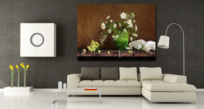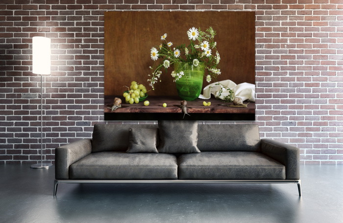 Каркас на который натягивается изображение может быть 2 или 4 см. Это то расстояние на которое изделие будет отступать от стены.