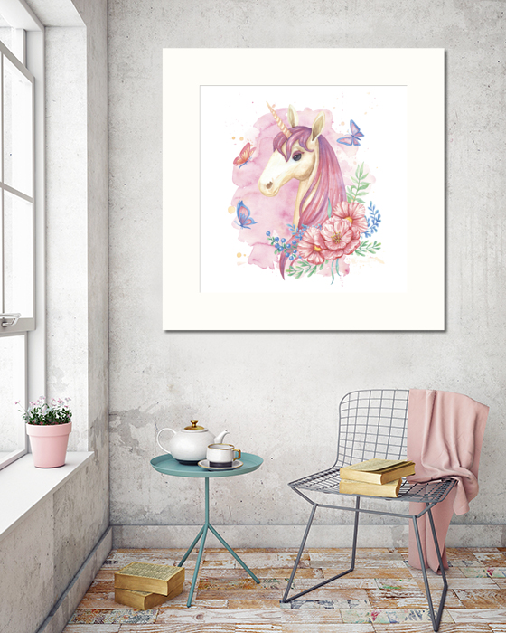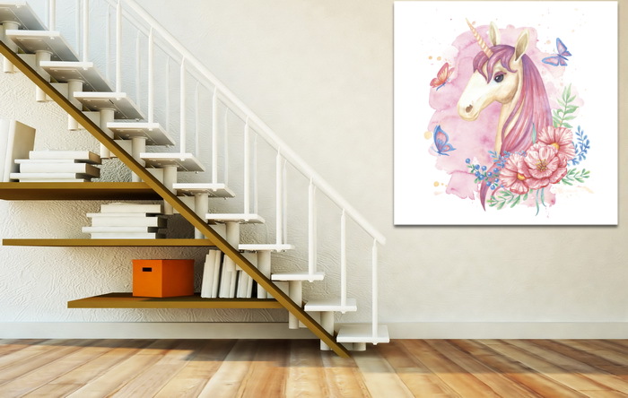 Любимый детьми единорог как символ волшебства чудесно впишется в детскую комнату. Нарисованный акварелью, он также вызывает ощущение легкости.