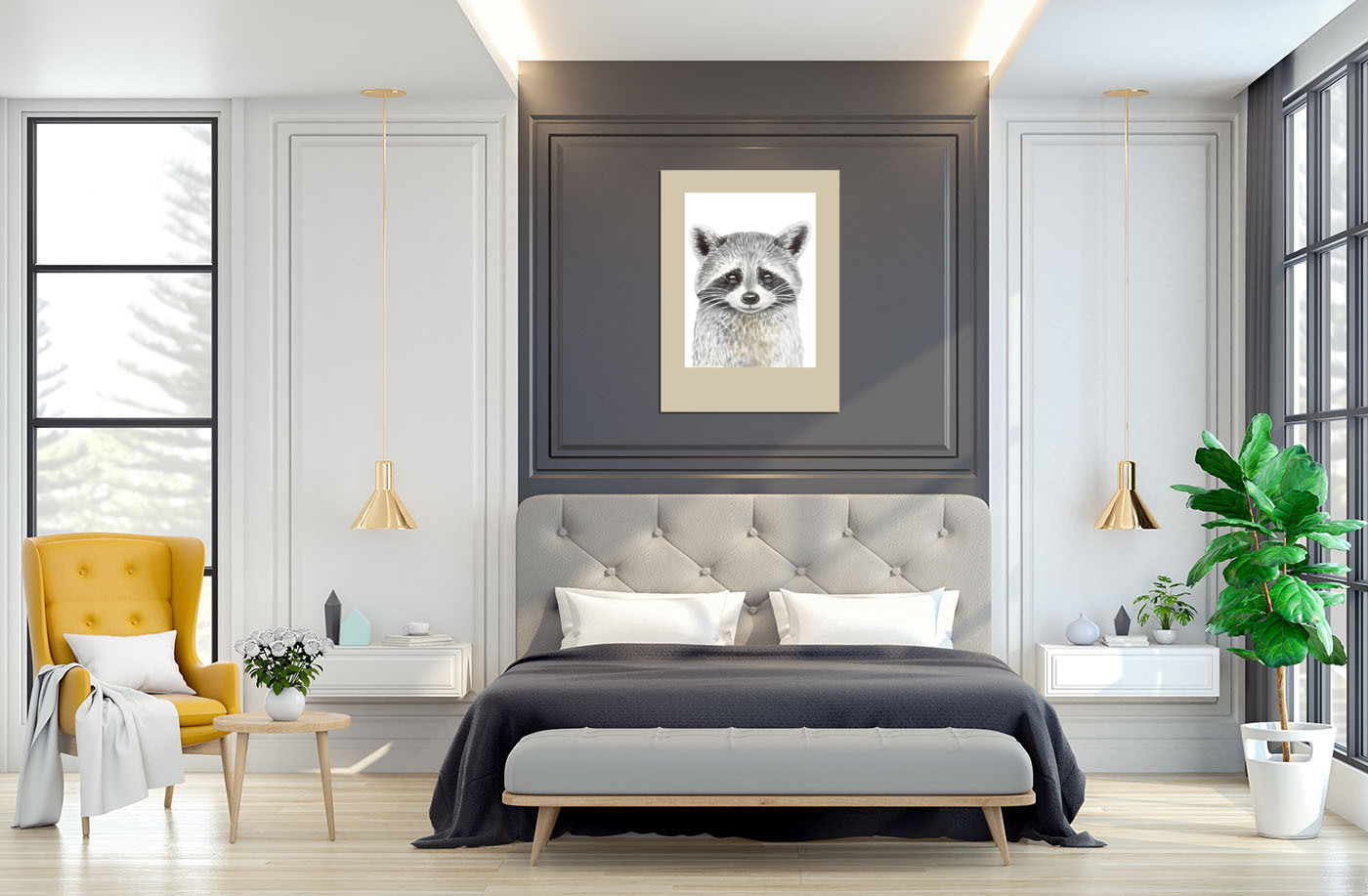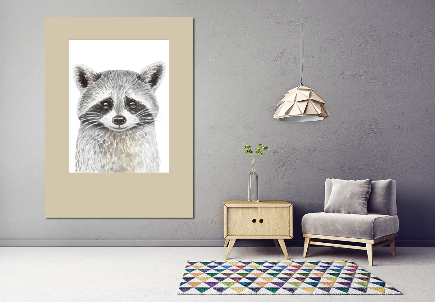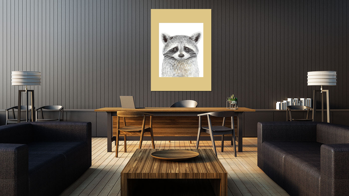 Портрет енотика в сочетании с другими постерами из серии "Лесные животные" прекрасно впишется в интерьер детской комнаты.