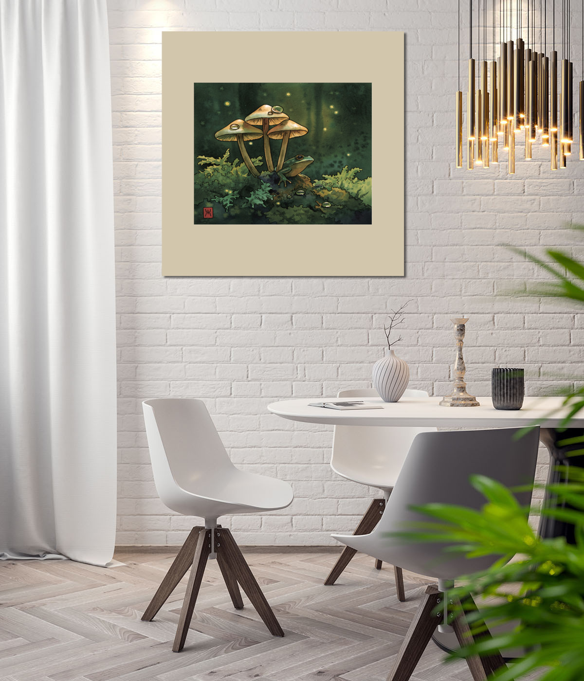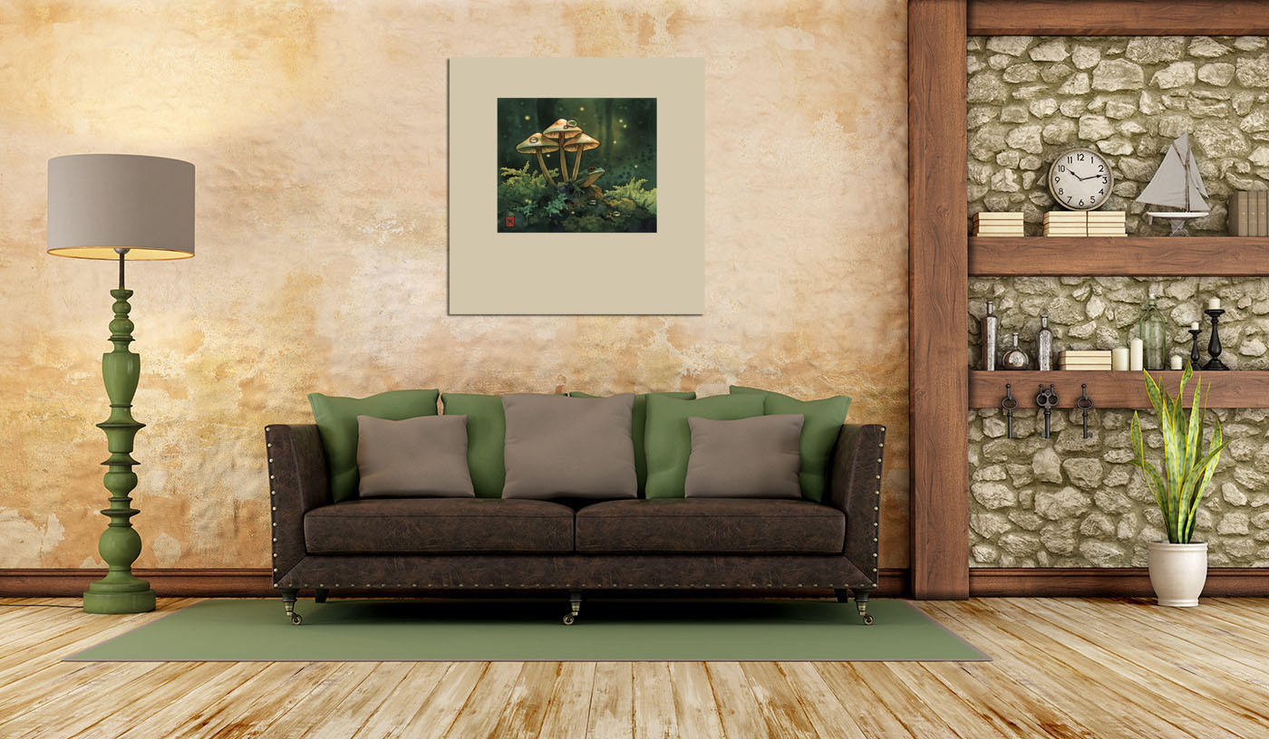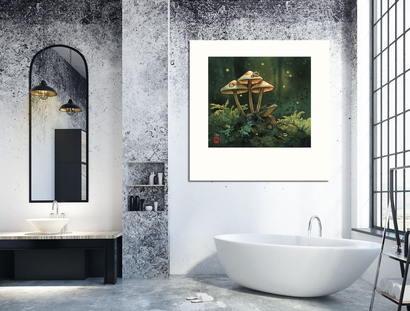 Постер Акварель "Лягушка в грибах"