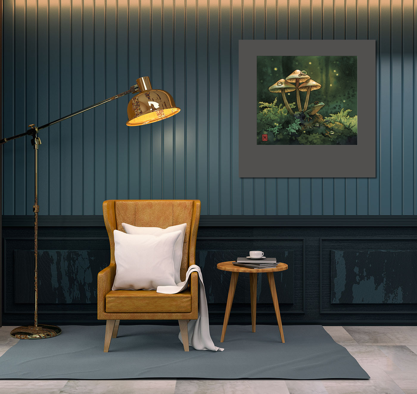 Акварель "Лягушка в грибах"