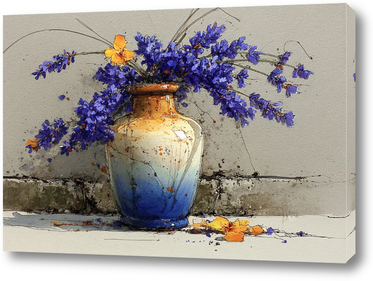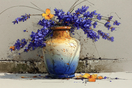 Букет полевых цветов в акварельной технике с выразительными мазками и брызгами краски, создающими ощущение лёгкости и естественности.