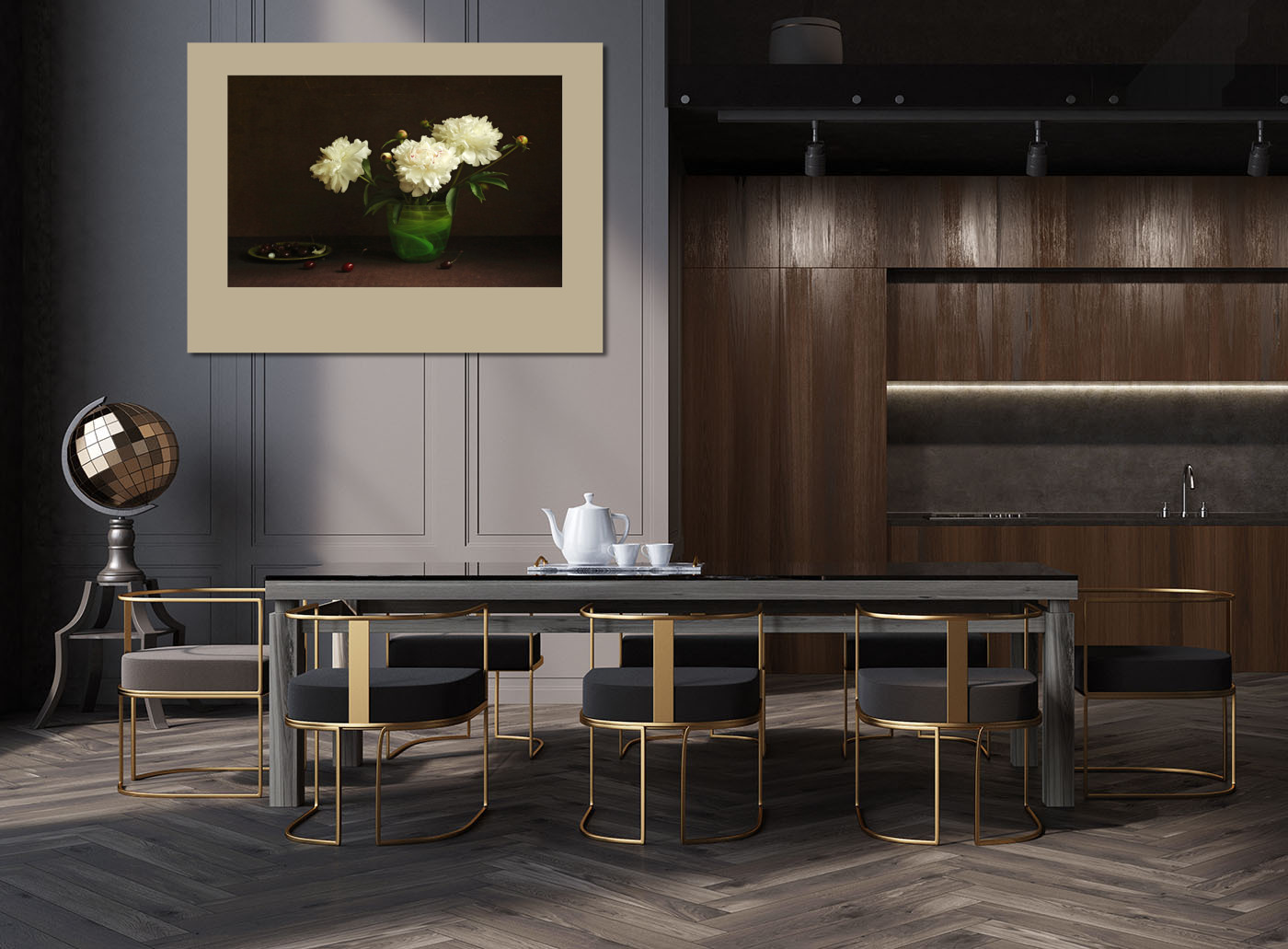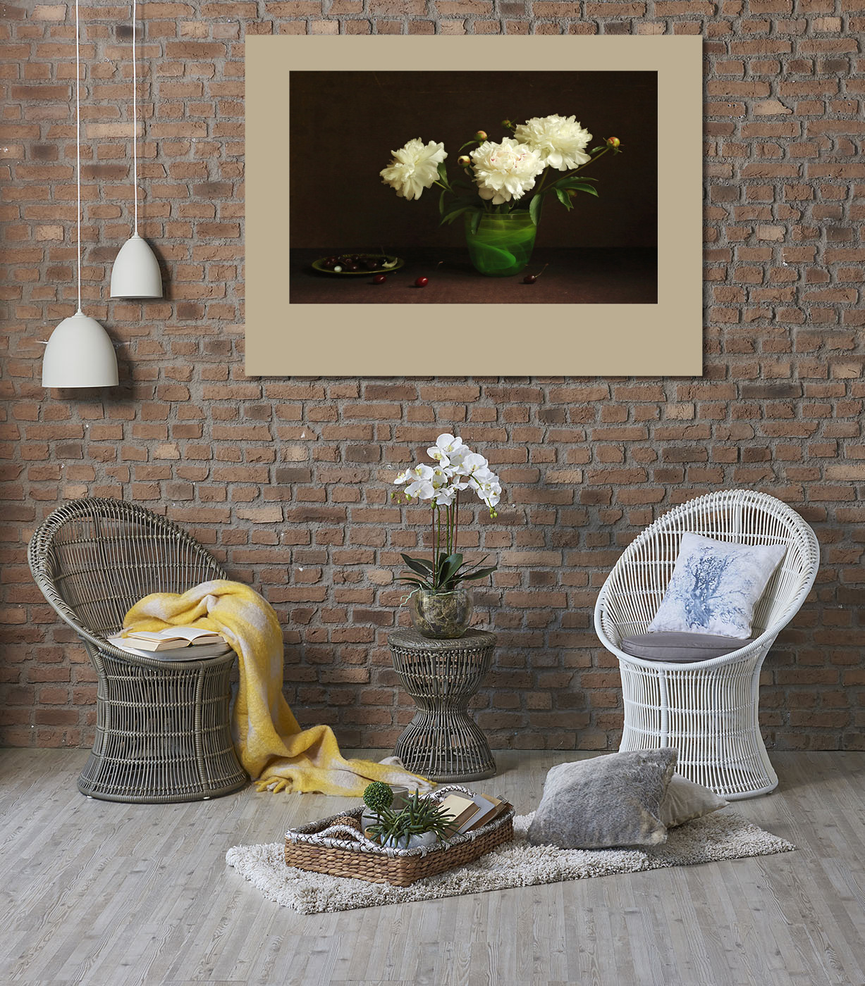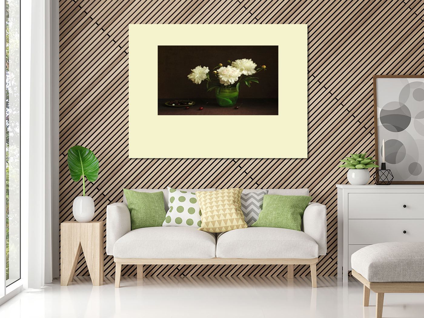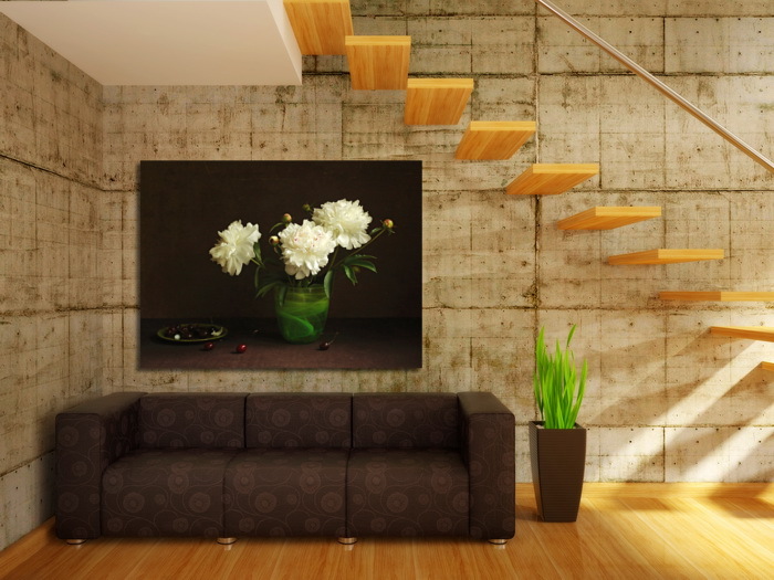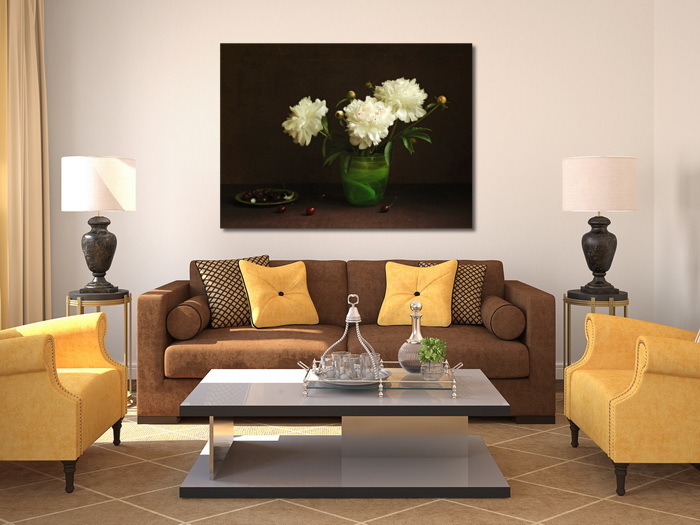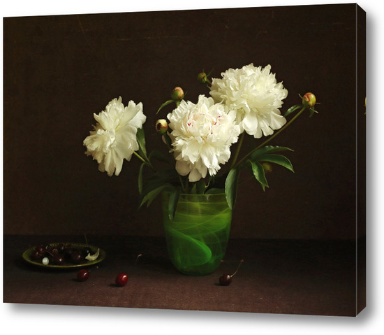 Постер Белые пионы в зеленой вазе