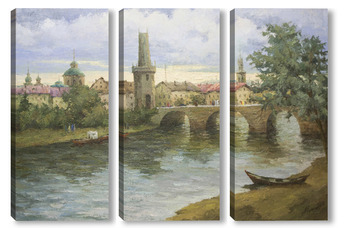 Модульные картины Прага с панорамным видом и с видом на крыши этого знаменитого города. Знаменитый мост в Праге