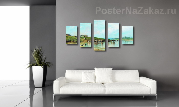 Модульная картина Полдень.Коровы в воде