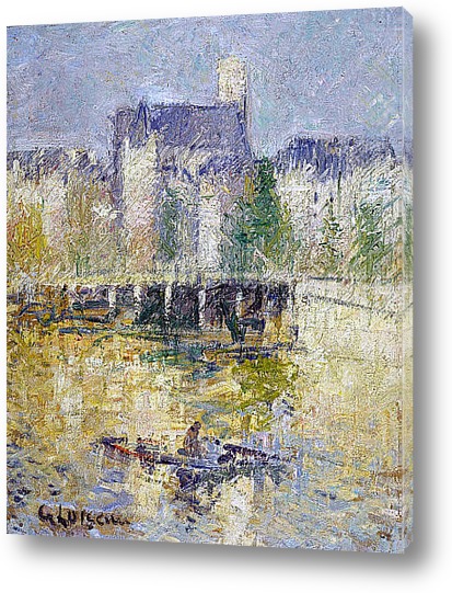 образы. В полотне из ярких мазков, словно сквозь радужные потоки дождя, проступают силуэты домов, осенней природы и лазурная гладь реки. Техника исполнения этих пейзажей очаровывает с первого взгляда. Картина Густава Луазо станет удачным приобретением для интерьера в стиле модерн, дополнив общую обстановку волшебными оттенками Севера Франции.