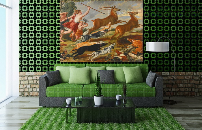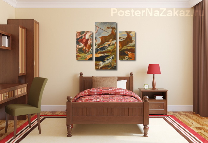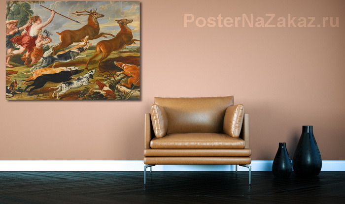 Модульная картина Богиня Диана и ее нимфы охотятся на оленей