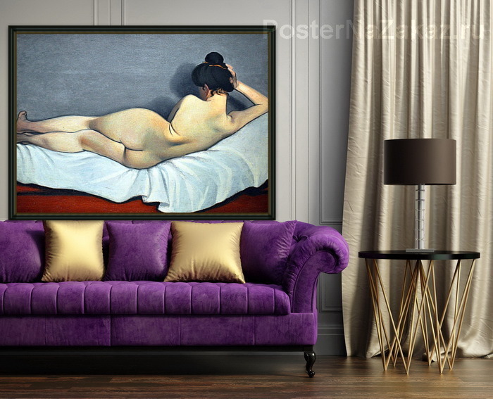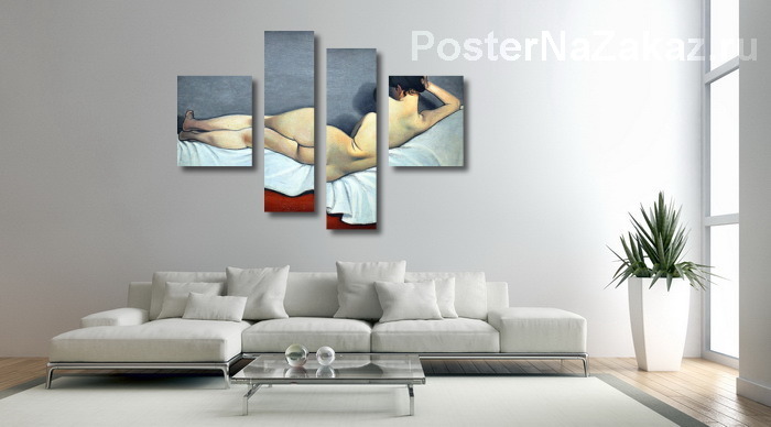 Модульная картина Женщина лежащая отвернувшись на красном диване, 1906