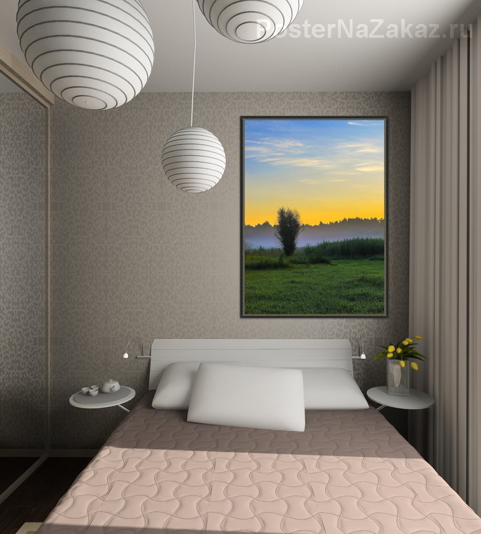 Состояние природы перед рассветом,небо уже окрашено в теплые оттенки солнечного света,где то вдалеке ,на заднем плане виднеется верхушка леса,ближе стоит необычный куст!