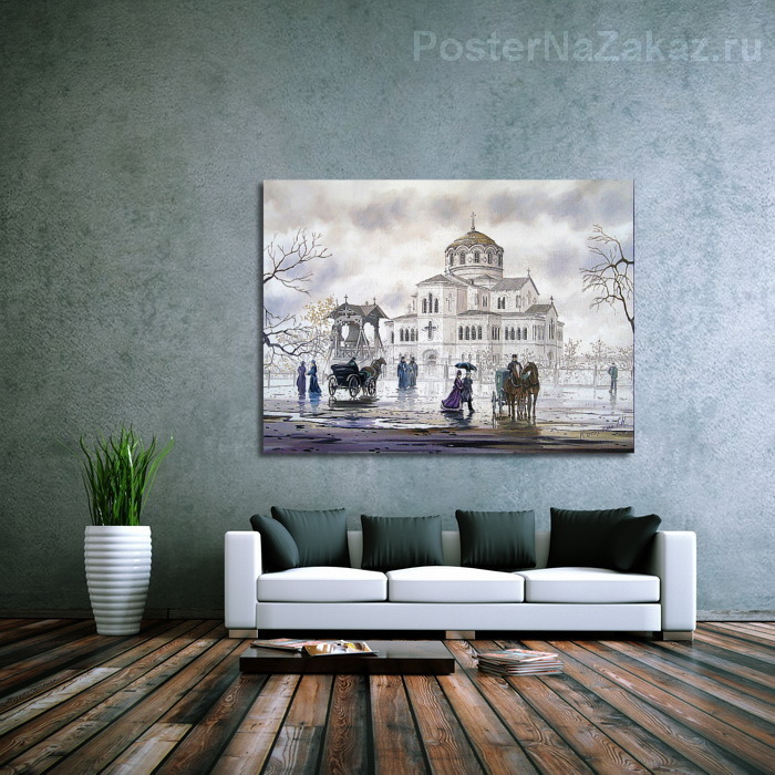 Одна из картин серии "Старый город" севастопольского художника Костромы Геннадия Николаевича. Отражает быт Севастополя конца XIX века. На картине изображён Владимирский кафедральный Собор в Херсонесе. Построен в 1876.