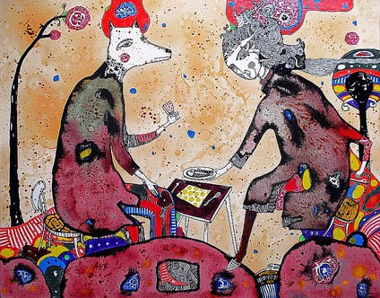 Авторская работа Наталии Пастушенко. Выполнена тушью и красками на холсте. Является частью большой серии работ на холсте, техника которых уникальна тем, что соединяет в себе элементы живописи и графики. Больше работ можно увидеть на моей страничке na