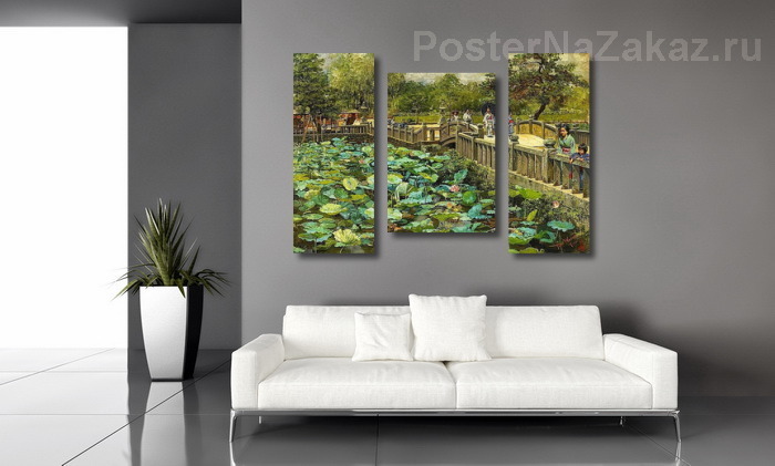 Модульная картина Пруд с лотосами, Сиба, Токио
