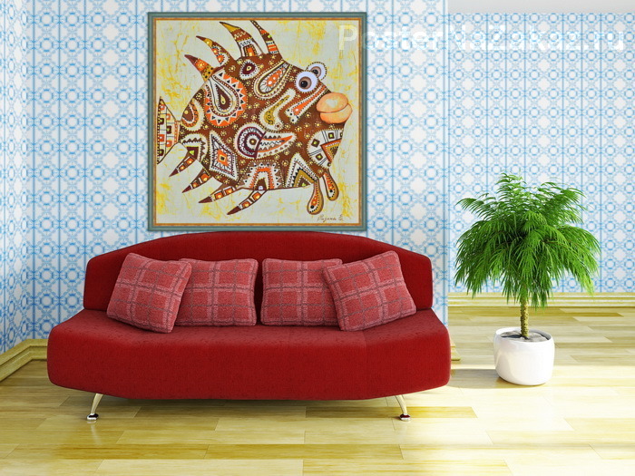Модульная картина Лоскутная рыбка