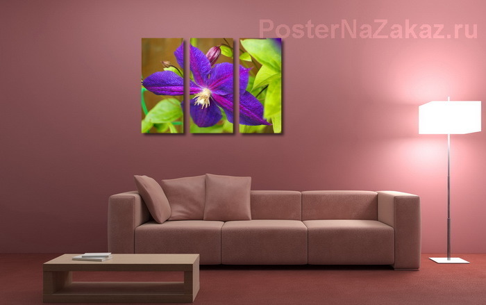 Клематисы - удивительные, яркие цветы...Постер с яркими цветами украсит ваше помещение, придаст свежести вашим чувствам, напомнит вам моменты общения с природой, перенесет в мир цветов, свежести, первозданной радости бытия...